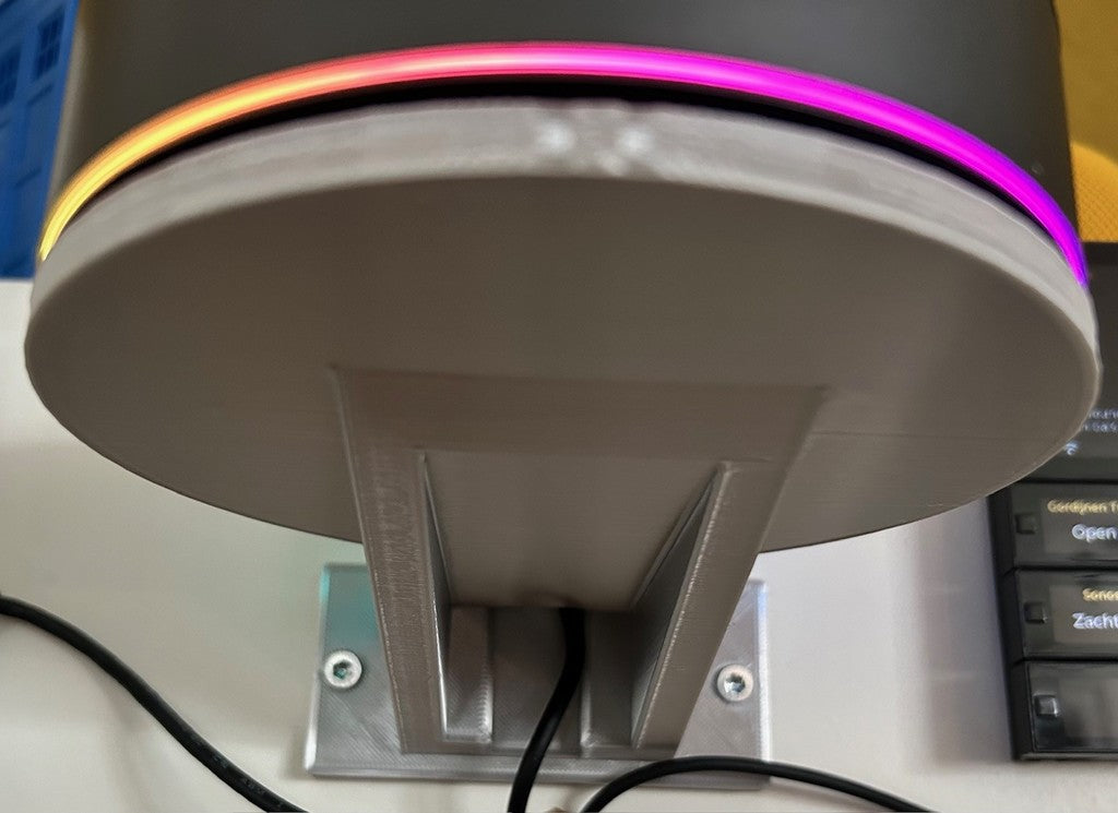 Dies ist eine horizontale Wandhalterung für den Athom Homey Pro 2023 (Hockey-Puck-Modell). Auf der Rückseite befindet sich ein Kabelloch, sodass Sie das Kabel von unten einführen können, um es noch schöner zu machen.