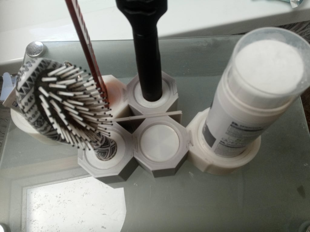 Sorgen Sie mit diesem modularen Badezimmer-Organizer für Ordnung in Ihrem Badezimmer. Dieses Kit besteht aus mehreren verschiedenen Komponenten, einschließlich Einsatzhaltern, Wandhalterung und verschiedenen Deckeln und Abdeckungen. Die Halter sind in zwei Größen erhältlich – einer Standard- und einer XXL-Version, die sich perfekt für größere Gegenstände eignet. Für ein ästhetischeres Erscheinungsbild und eine einfachere Reinigung enthält das Set auch Deckel und Muttereinsätze.