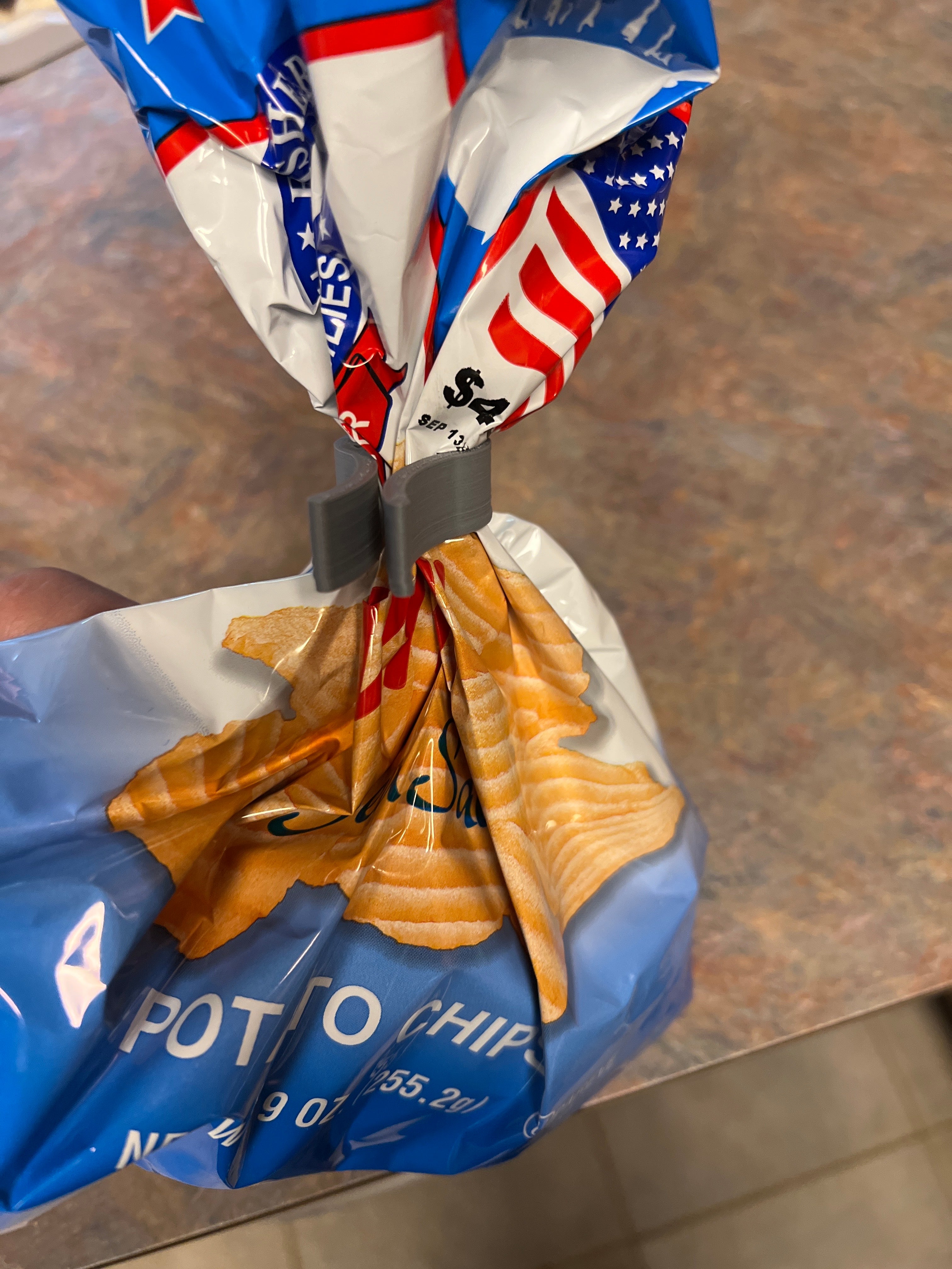 Ein einfacher Taschenclip, der Ihre Taschen geschlossen hält. Es eignet sich gut für Chipstüten und hilft, Ihre Snacks frisch zu halten. Noch nicht viel anderes getestet.