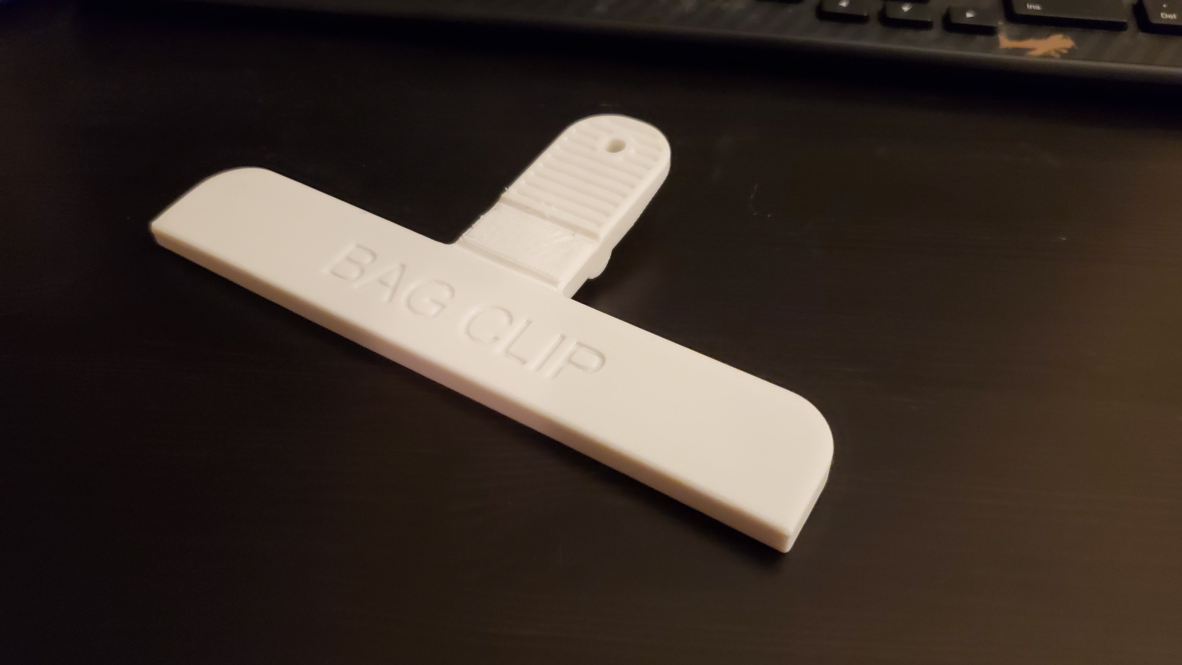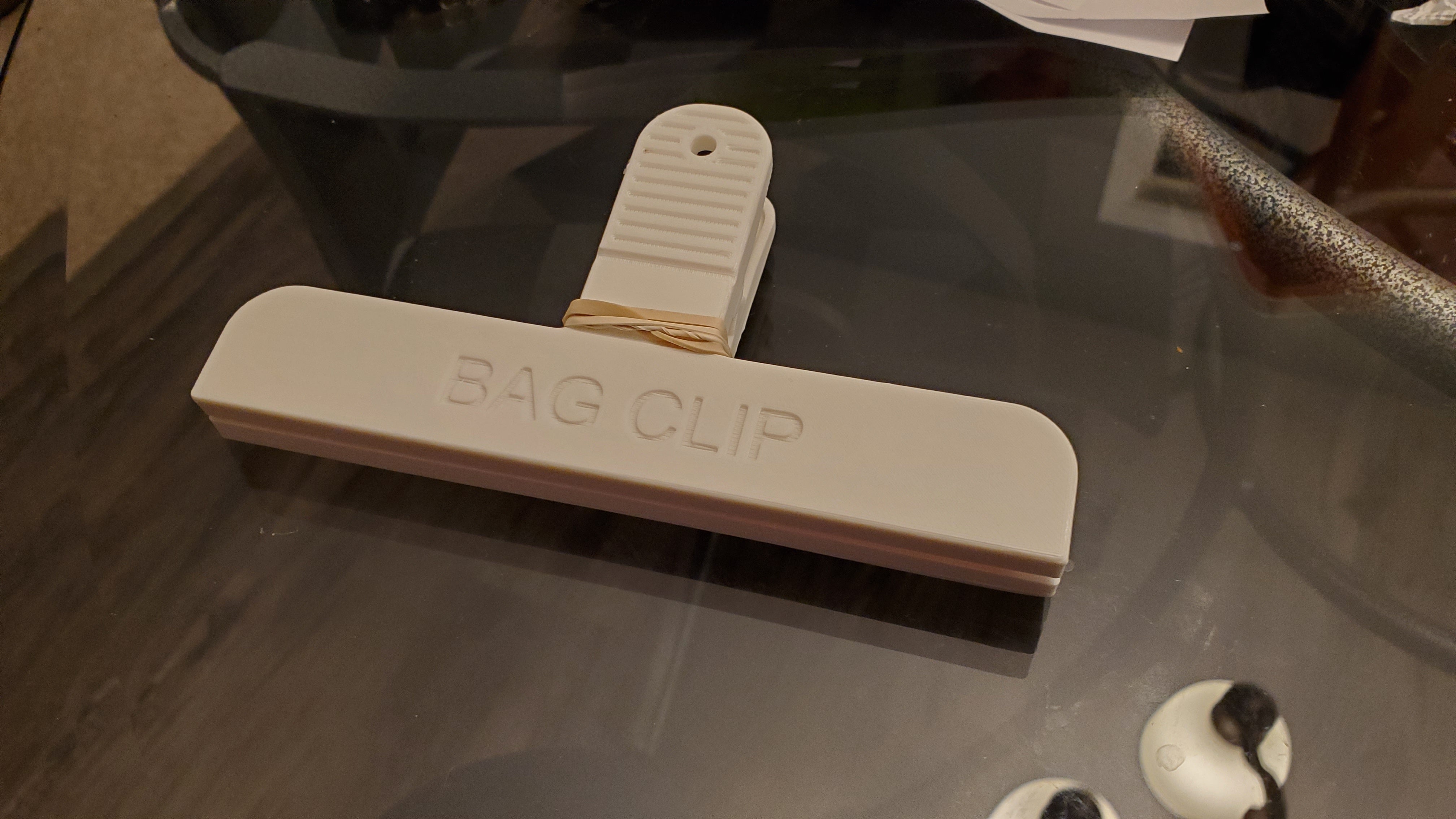 Dies ist ein Taschenclip, der Ihre Taschen geschlossen und den Inhalt frisch hält. Der Clip ist symmetrisch gestaltet, sodass Sie nur zwei Teile drucken müssen, damit sie zusammenpassen. Wenn Sie keine Feder haben, können Sie einfach ein Gummiband um die Rille Ihrer Wahl wickeln.
