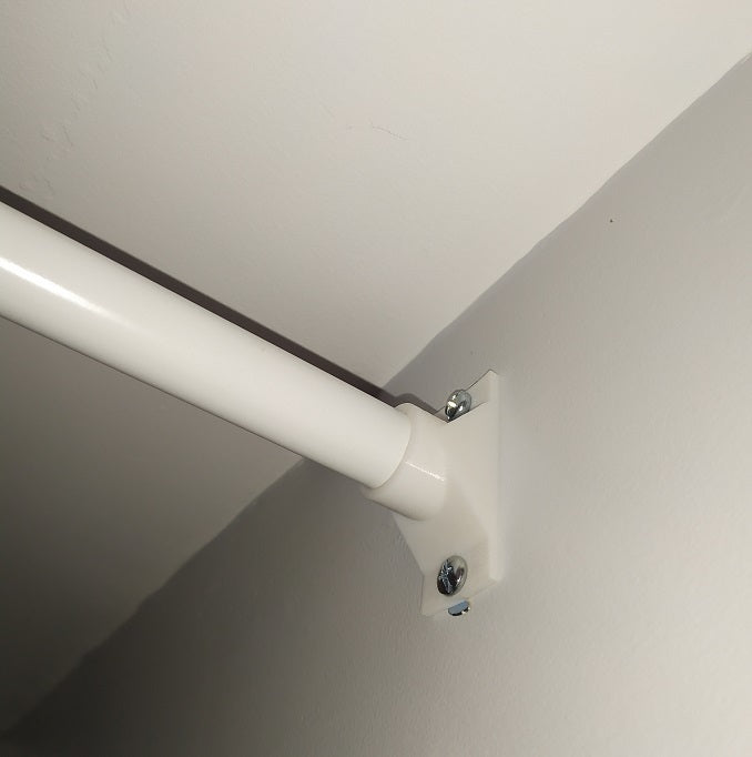 Der Halter ist für Ikea RÄCKA Gardinenstangen konzipiert. Das bedeutet, dass Sie Ihre Gardinenstange ganz ohne Schrauben aufstellen können. Einfach den Stab in die Halterung stecken und schon sitzt er fest.