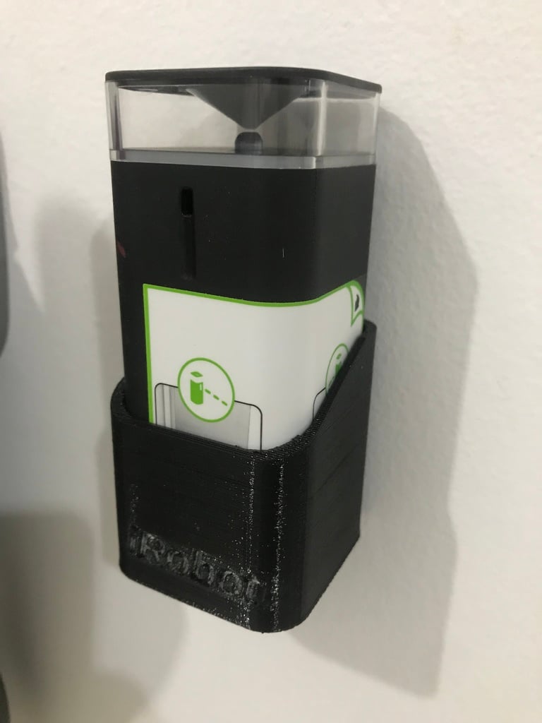 Eine kleine Halterung für Ihren Roomba Beacon. Mit diesem Halter behalten Sie den Überblick über Ihren Roomba Beacon, indem Sie ihn an der Wand anbringen, an der Sie Ihre Reinigungsmittel aufbewahren.