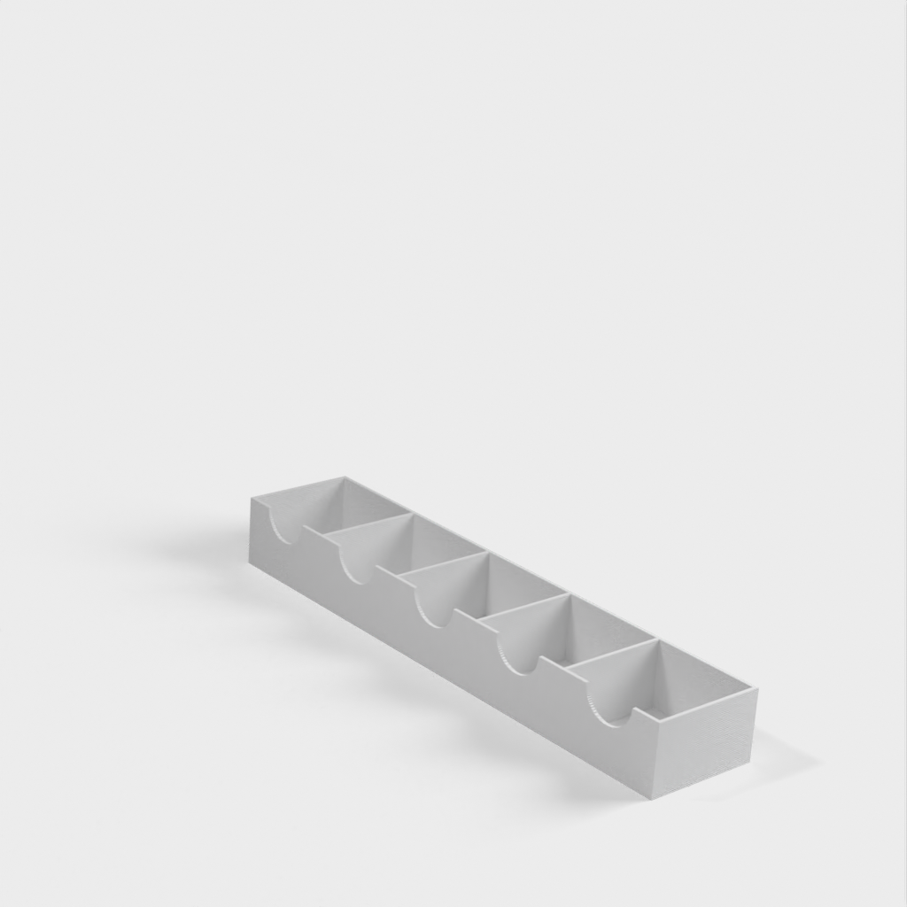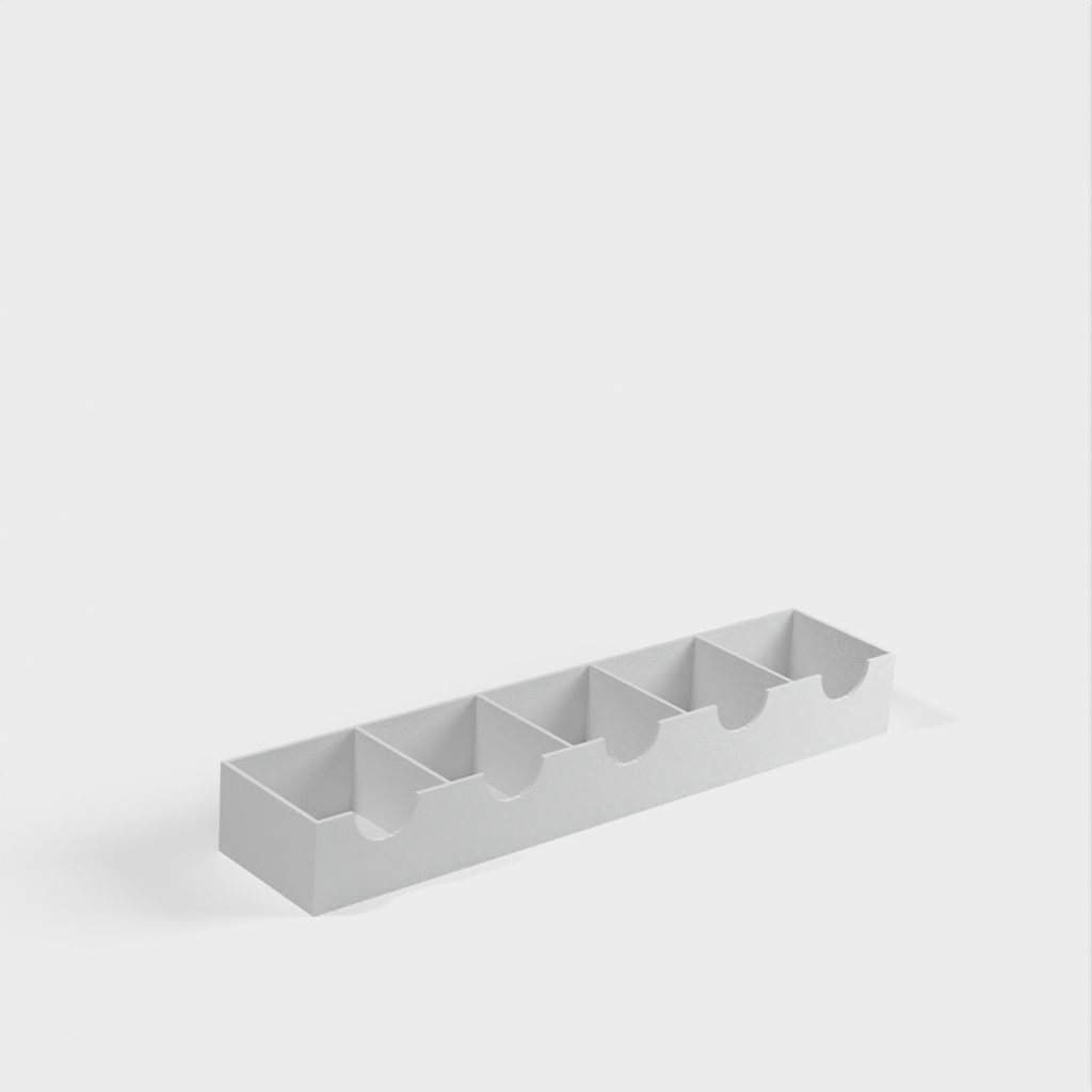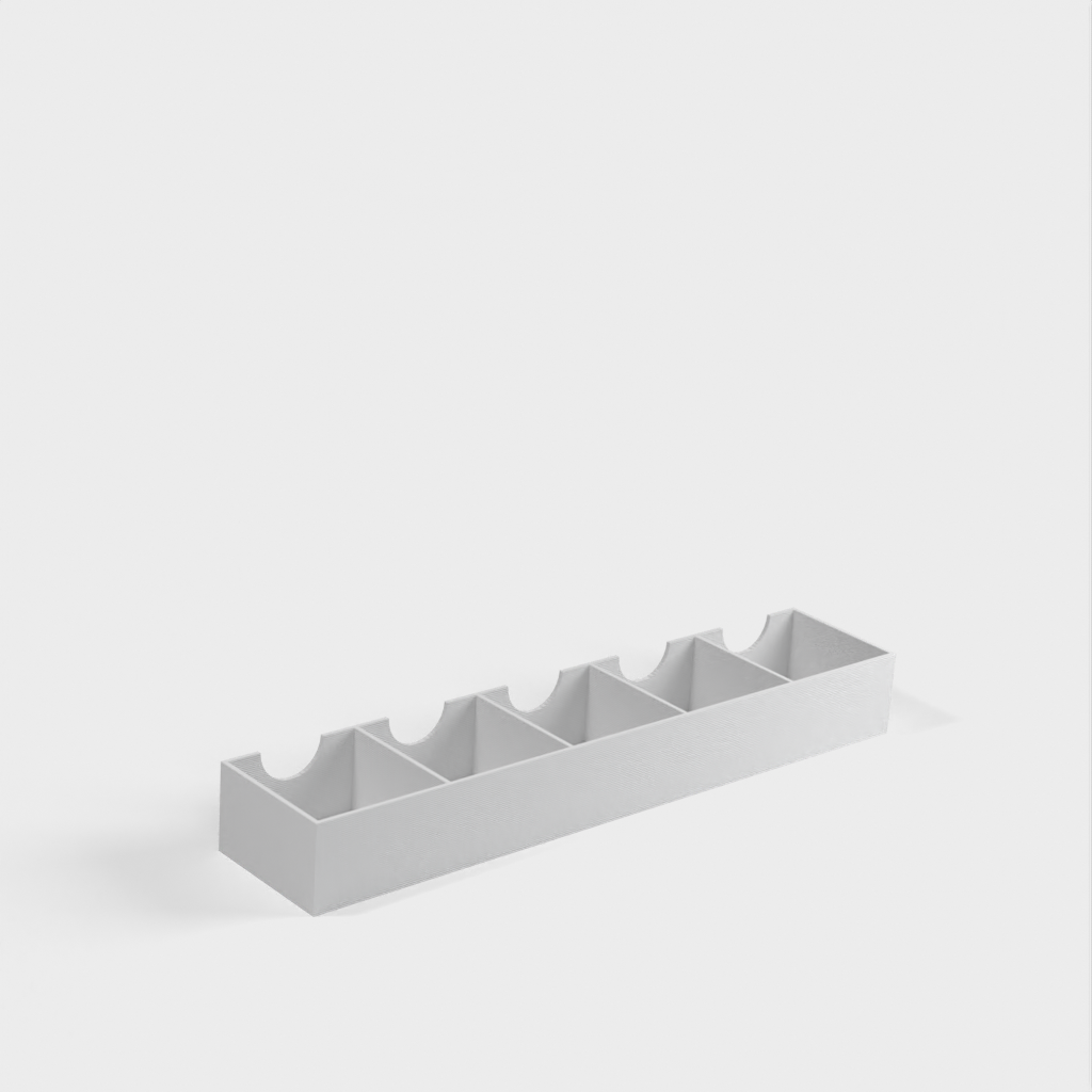 Dieser Halter kann zur einfachen und bequemen Aufbewahrung einfach mit doppelseitigem Klebeband an Schranktüren befestigt werden. Es kann mit OpenSCAD an Ihre spezifischen Bedürfnisse angepasst werden und bietet Platz für quadratische 45-mm-Flaschen.