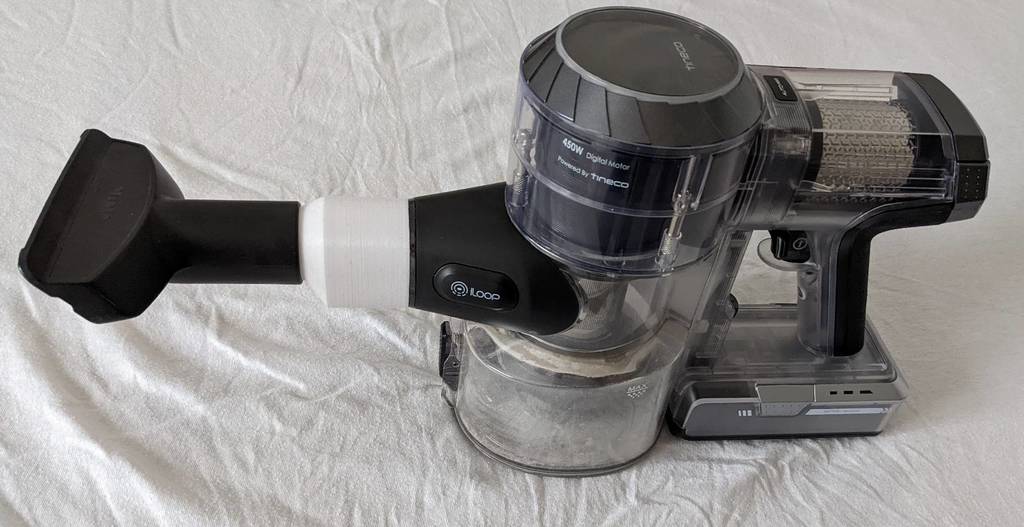 Mit diesem Adapter können Sie Düsen und anderes Zubehör für Miele und ähnliche Staubsauger an Ihrem Tineco Akku-Staubsauger verwenden. Es unterstützt alle Zubehörteile mit einem 35-mm-Wellenanschluss, einschließlich der erstaunlichen 3D4U-Designs . Das letzte Bild zeigt den Werttrenner montiert auf dem Tineco S11.