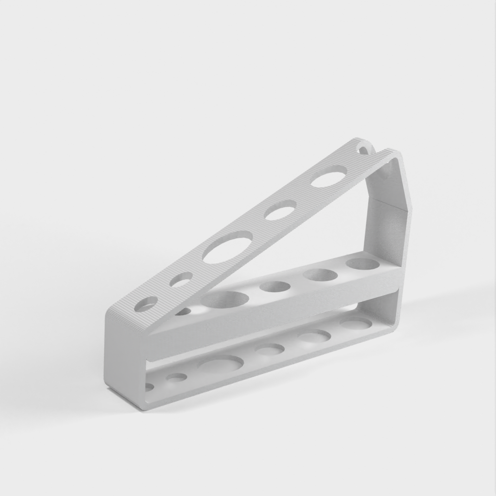 Ein einfacher Zahnbürstenhalter für 3 normale Curaprox-Zahnbürsten, 2 kleine Bürsten und 1 Kinderbürste. Für mehr Stabilität ist es unten verklebt. So bleibt Ihr Badezimmer organisiert und Ihre Zahnbürsten an einem Ort.