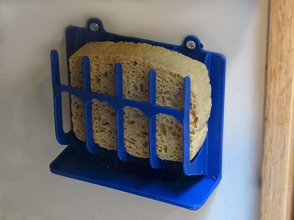 Dieser an der Wand montierte Schwammhalter eignet sich perfekt für die Montage im Schrank unter der Spüle. Es verfügt über eine integrierte, leicht zu reinigende Auffangschale und eine solide Hinterkante, um Feuchtigkeit von der Wand fernzuhalten.