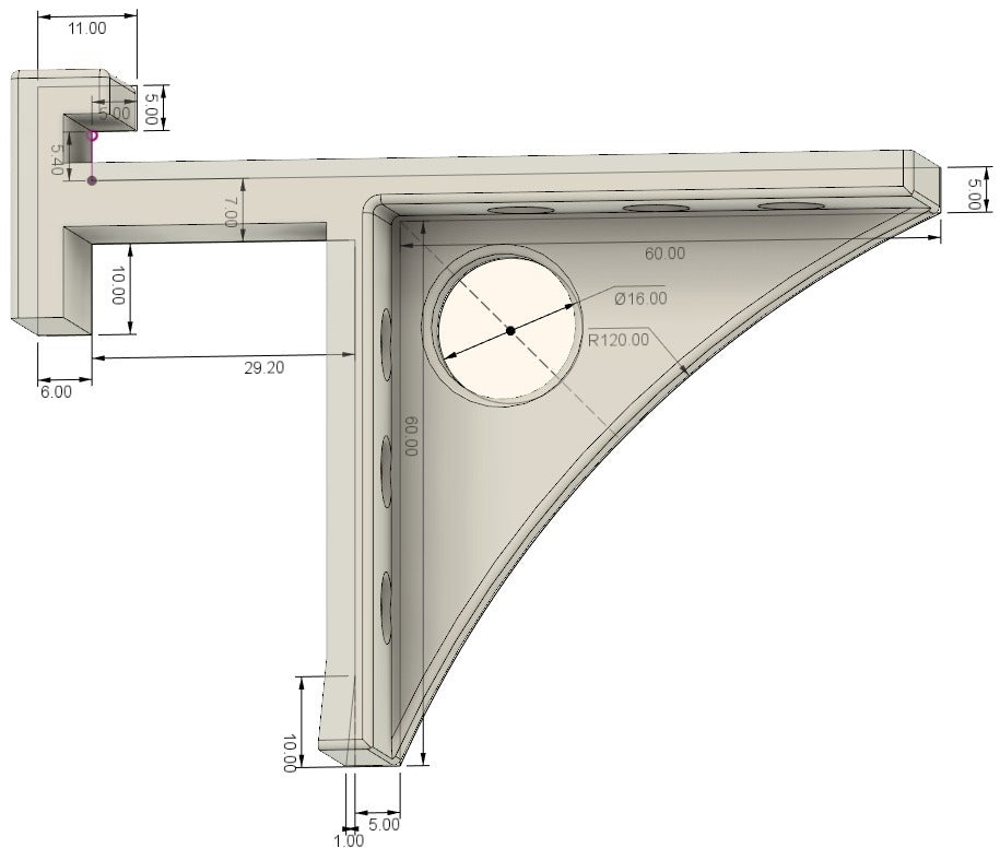 Dies ist ein Regal zur Montage an einem IKEA-Bett mit einer Seitenstärke von 29 mm. Das Regal besteht aus drei Teilen: zwei Halterungen und einer Platte. Sie können wählen, aus welchem Material die Platte bestehen soll, zum Beispiel lasergeschnittenes Sperrholz. Die Platte hat eine Dicke von 5 mm und ist 260 x 210 mm groß, kann jedoch je nach Bedarf in der Größe angepasst werden. Sie können in umgekehrter Reihenfolge drucken, wenn Sie das Regal auf der anderen Seite montieren müssen. Link zur Designdatei: https://a360.co/2Syop3N