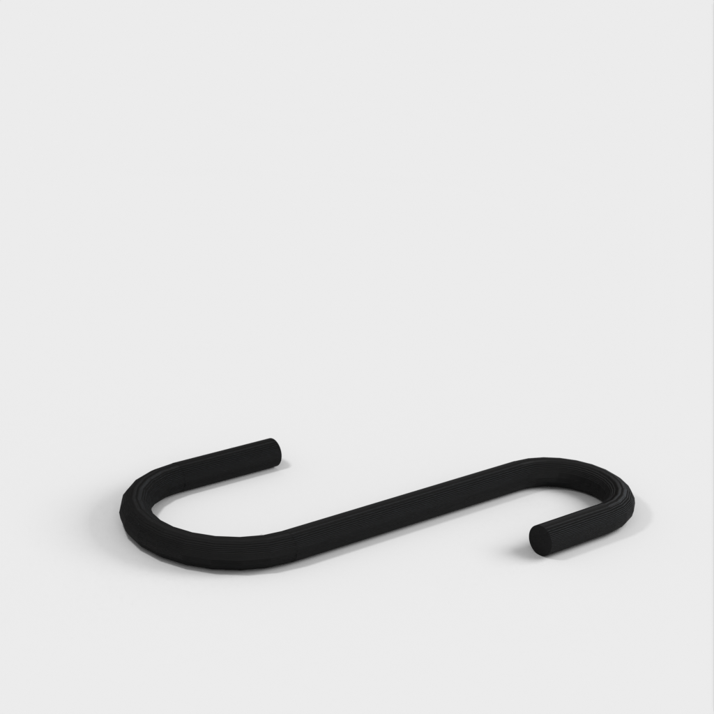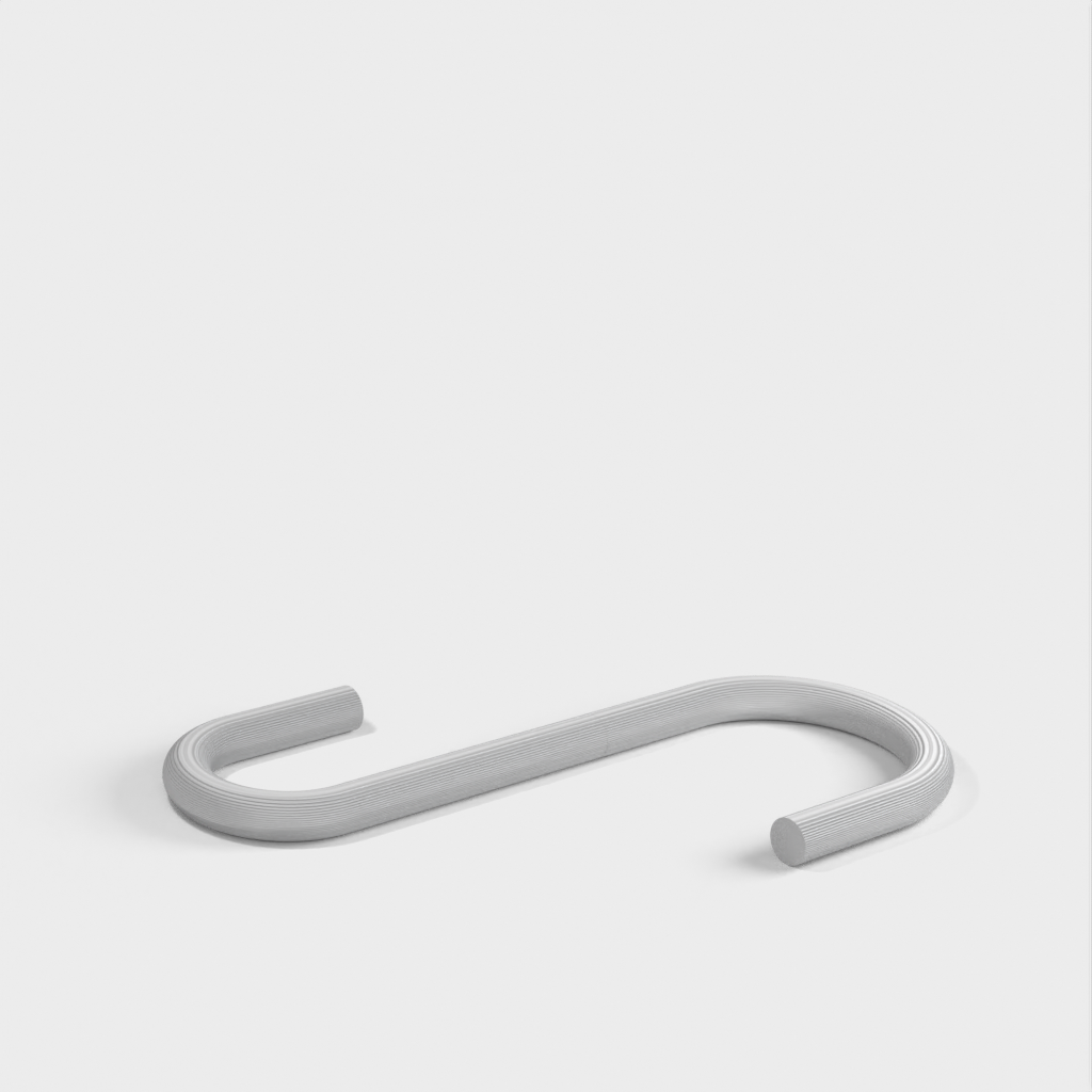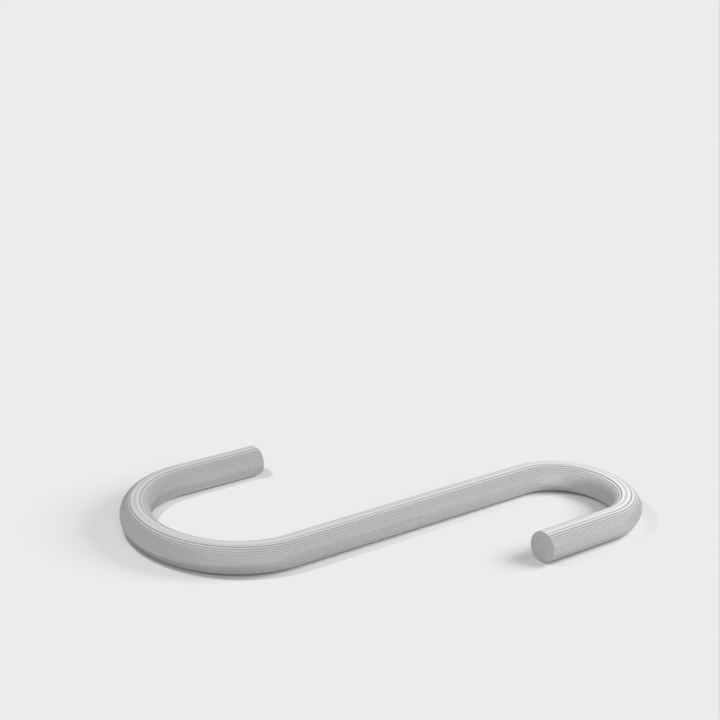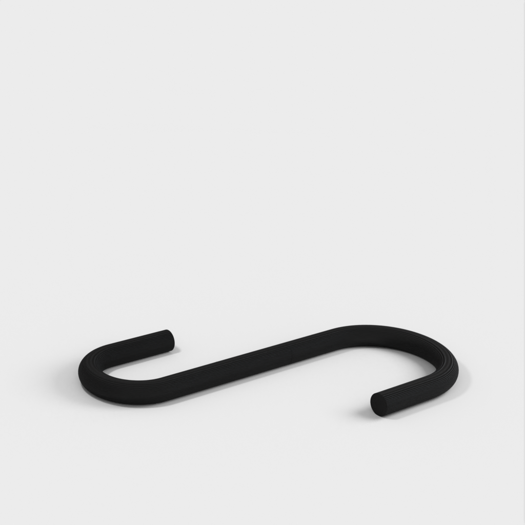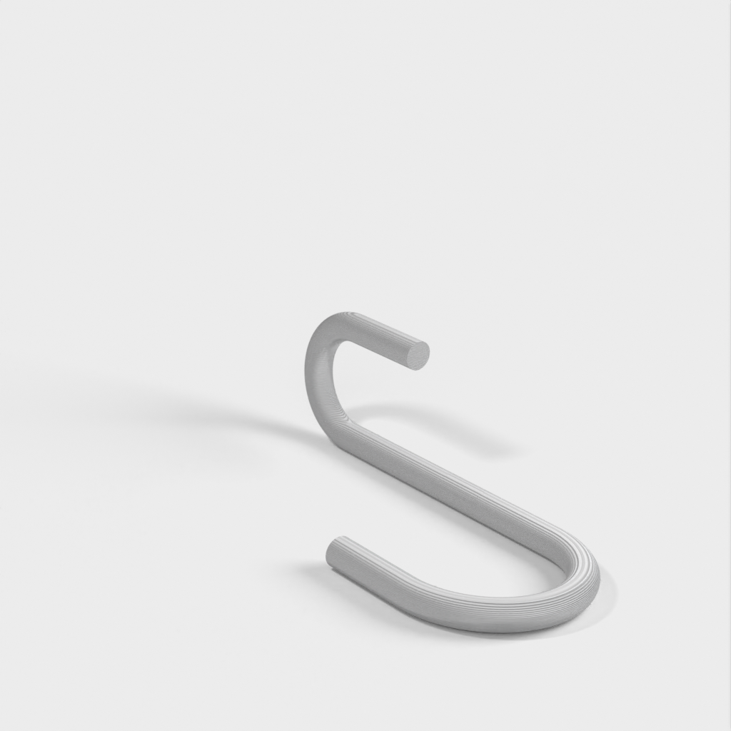 Ich habe eine „umgekehrte“ Version hinzugefügt, bei der die beiden Hakenenden im rechten Winkel zueinander stehen. Dadurch ist es möglich, breite Gegenstände wie eine Bratpfanne mit einem deutlich platzsparenderen Profil aufzuhängen als mit dem normalen Haken.