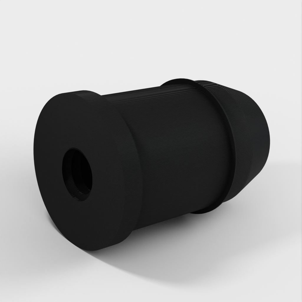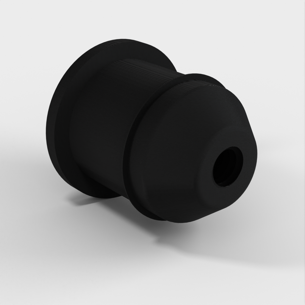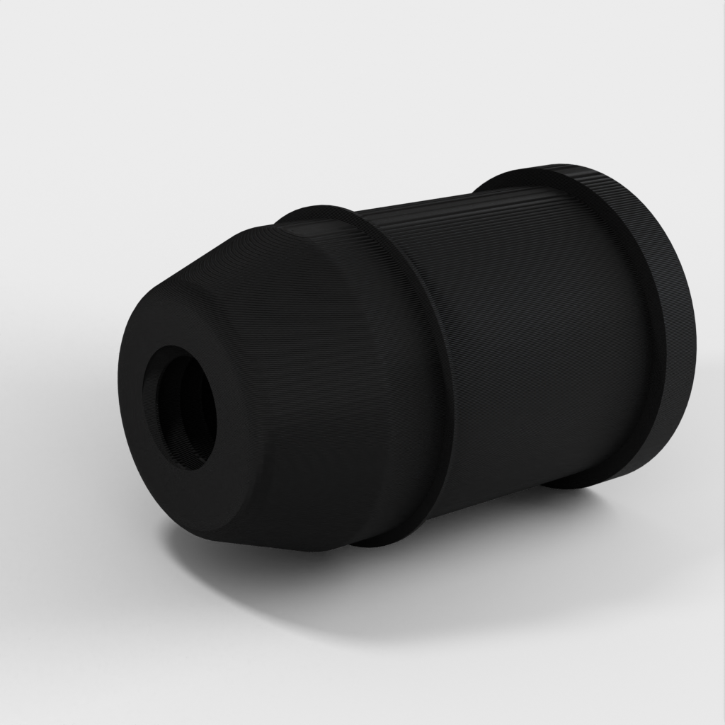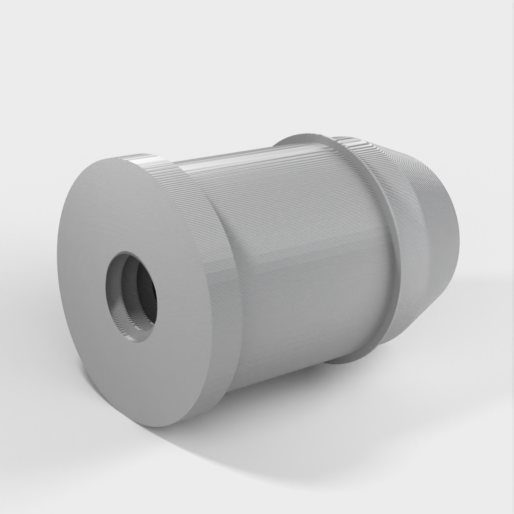Dies ist ein Endstopfen für eine IKEA Räcka Gardinenstange. Der Endstopfen ist ein einfacher Stopfen, der über ein Gewindeloch zur Befestigung des Knopfes verfügt. Der Stopfen hat eine leichte Kante entlang des Zylinders, um ihn an Ort und Stelle zu halten. Jede Stange hat zwei Stangendurchmesser – eine Innenstange sitzt innerhalb der Außenstange, sodass die Gesamtlänge angepasst werden kann. Es gibt Ersatzteile sowohl für die Innen- als auch für die Außenstange.