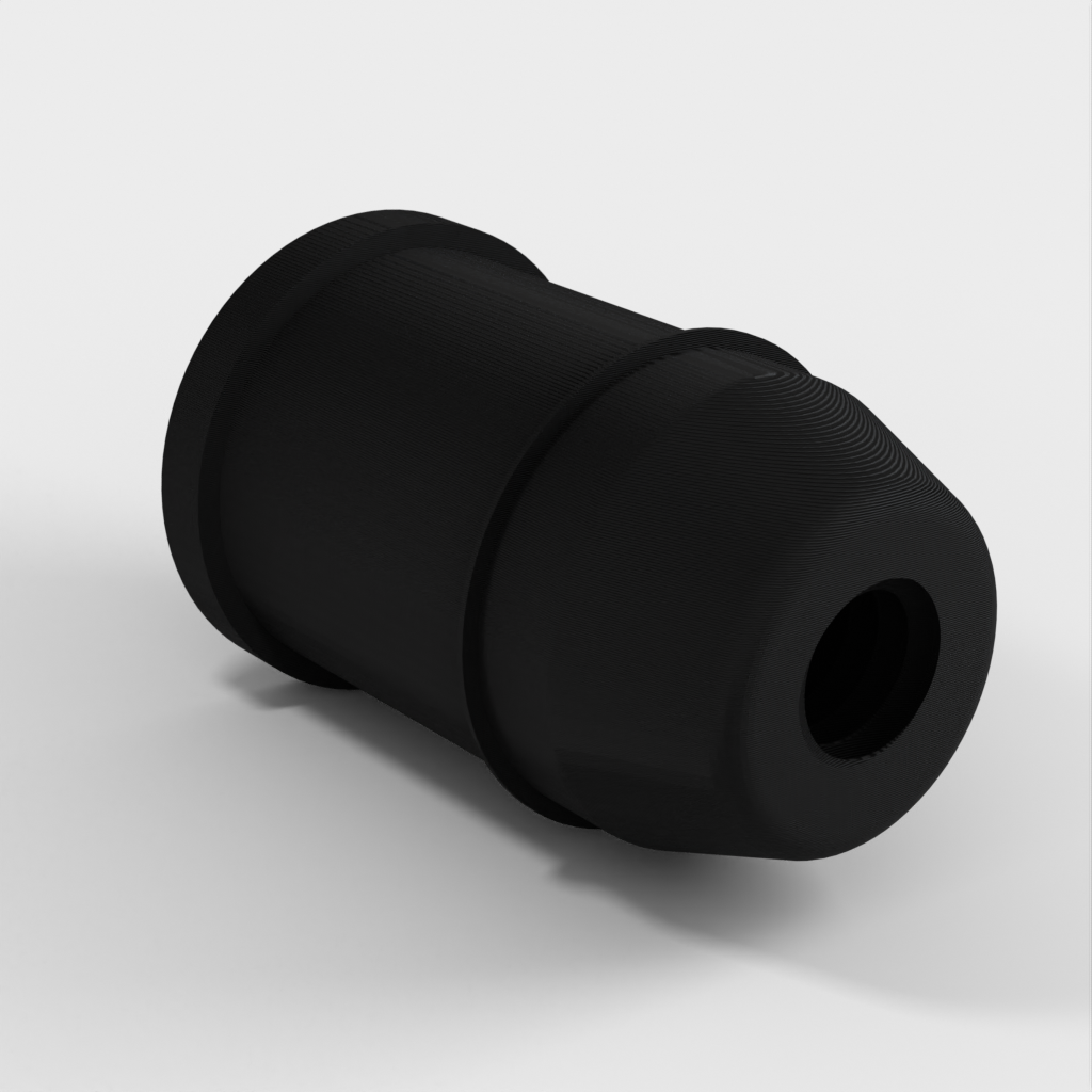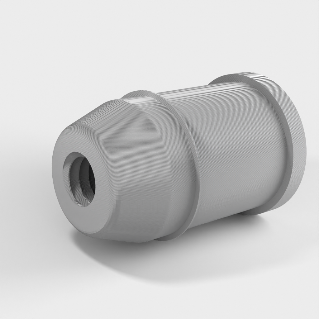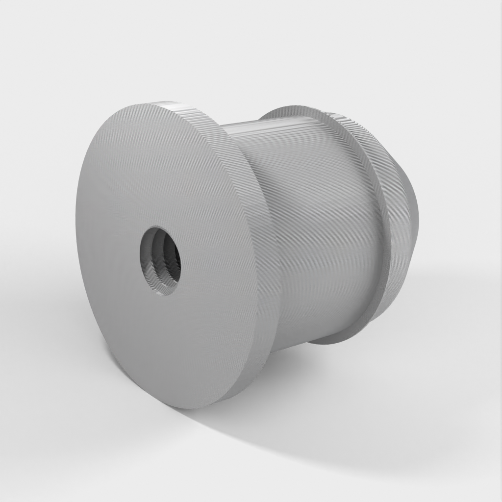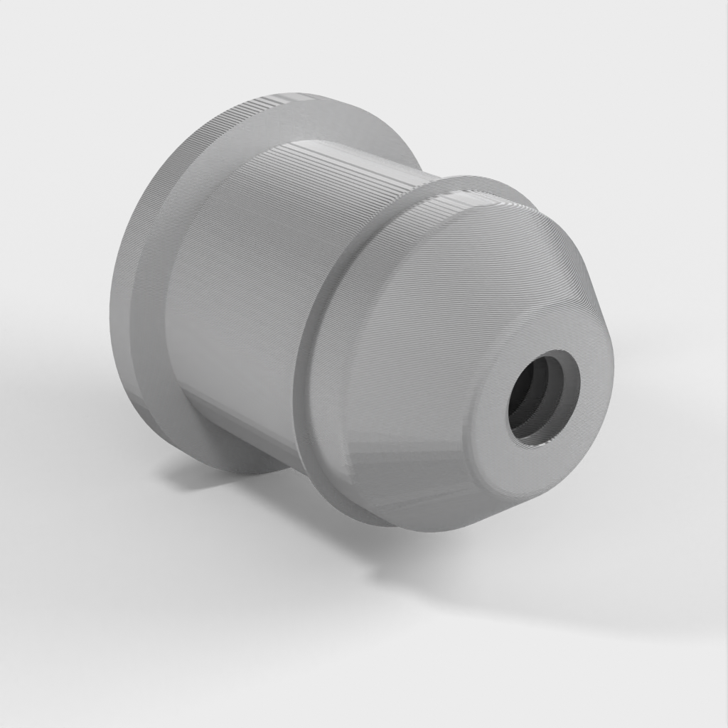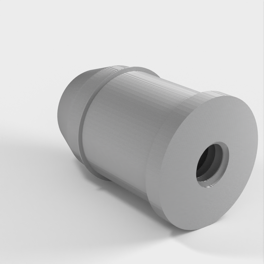 Dies ist ein Endstopfen für eine IKEA Räcka Gardinenstange. Der Endstopfen ist ein einfacher Stopfen, der über ein Gewindeloch zur Befestigung des Knopfes verfügt. Der Stopfen hat eine leichte Kante entlang des Zylinders, um ihn an Ort und Stelle zu halten. Jede Stange hat zwei Stangendurchmesser – eine Innenstange sitzt innerhalb der Außenstange, sodass die Gesamtlänge angepasst werden kann. Es gibt Ersatzteile sowohl für die Innen- als auch für die Außenstange.
