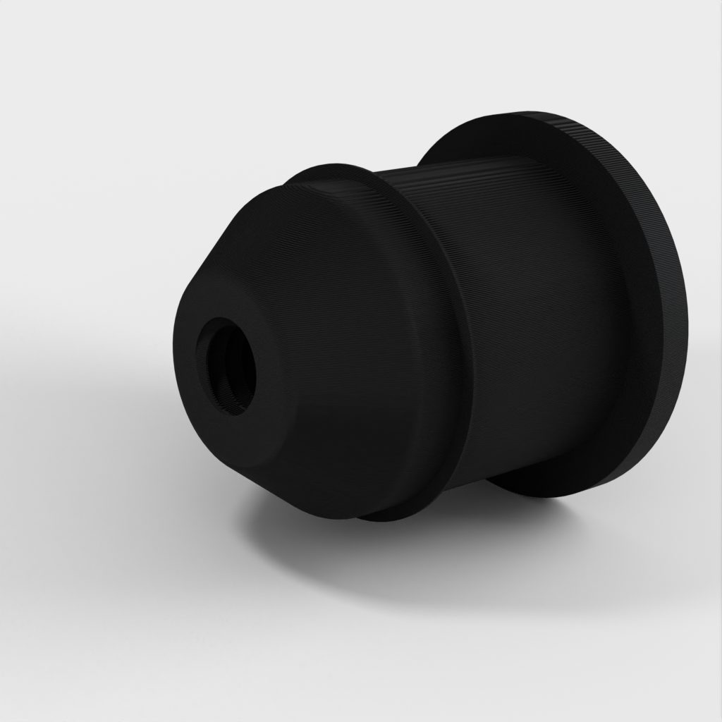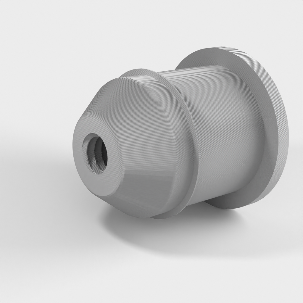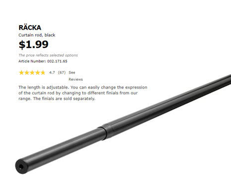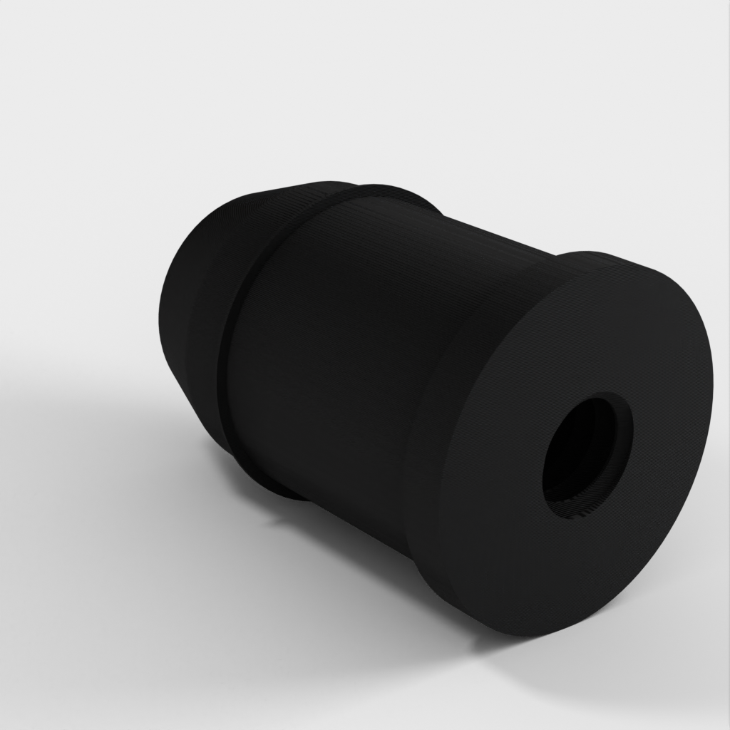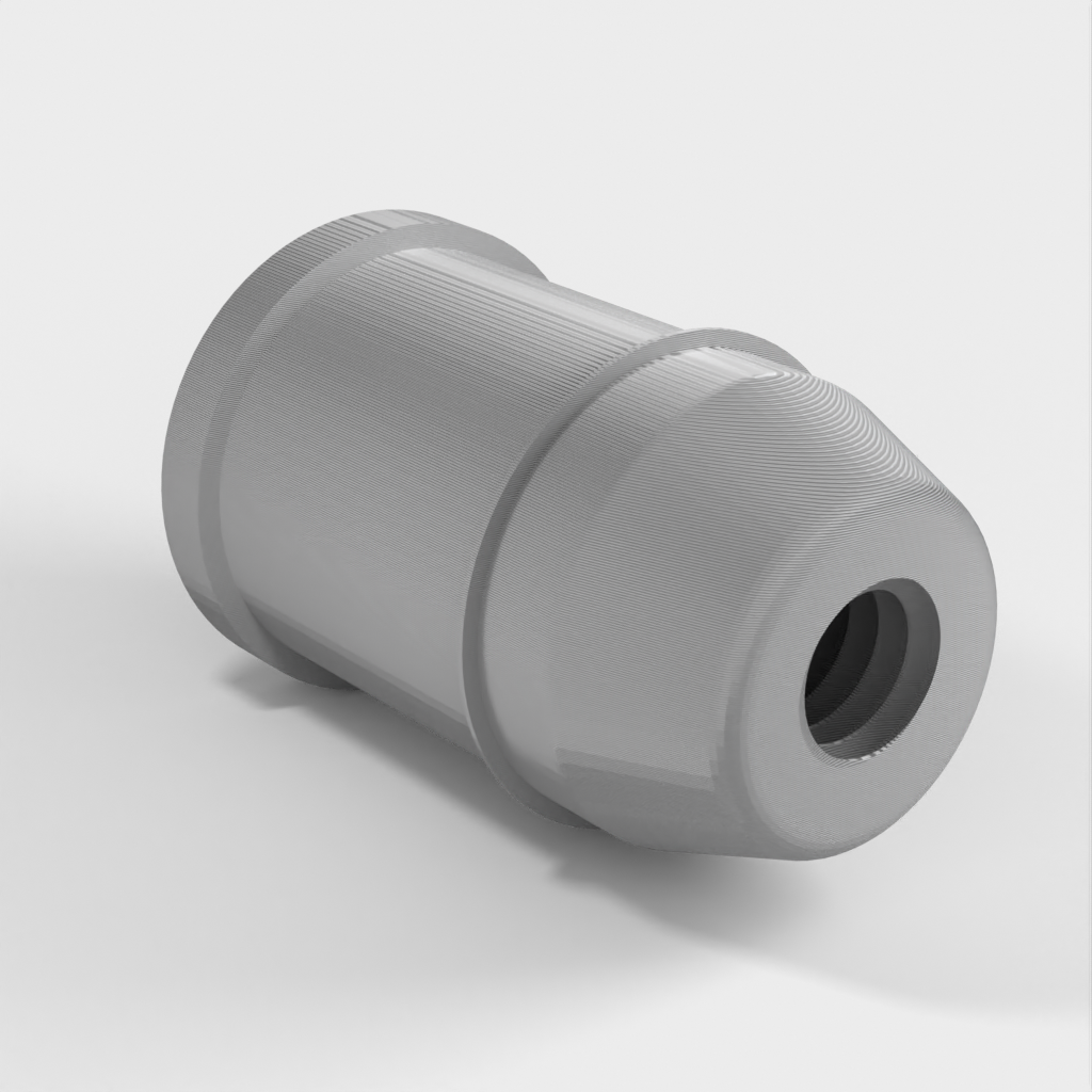 Dies ist ein Endstopfen für eine IKEA Räcka Gardinenstange. Der Endstopfen ist ein einfacher Stopfen, der über ein Gewindeloch zur Befestigung des Knopfes verfügt. Der Stopfen hat eine leichte Kante entlang des Zylinders, um ihn an Ort und Stelle zu halten. Jede Stange hat zwei Stangendurchmesser – eine Innenstange sitzt innerhalb der Außenstange, sodass die Gesamtlänge angepasst werden kann. Es gibt Ersatzteile sowohl für die Innen- als auch für die Außenstange.