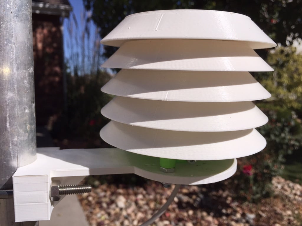 Das Shield ist vielseitig einsetzbar und verfügt über Adapter, die die Montage verschiedener Temperatur- und Feuchtigkeitssensoren namhafter Hersteller ermöglichen. Die mitgelieferten Montagehalterungen ermöglichen zudem die einfache Befestigung des Shields an vertikalen und horizontalen 1-Zoll-Rohren und sorgen so für Flexibilität bei der Installation. Um die Lebensdauer und Witterungsbeständigkeit des Produkts zu maximieren, empfiehlt es sich, die fertigen Teile mit einem UV-beständigen Spray zu behandeln, was insbesondere für den langfristigen Einsatz im Außenbereich von Vorteil ist.