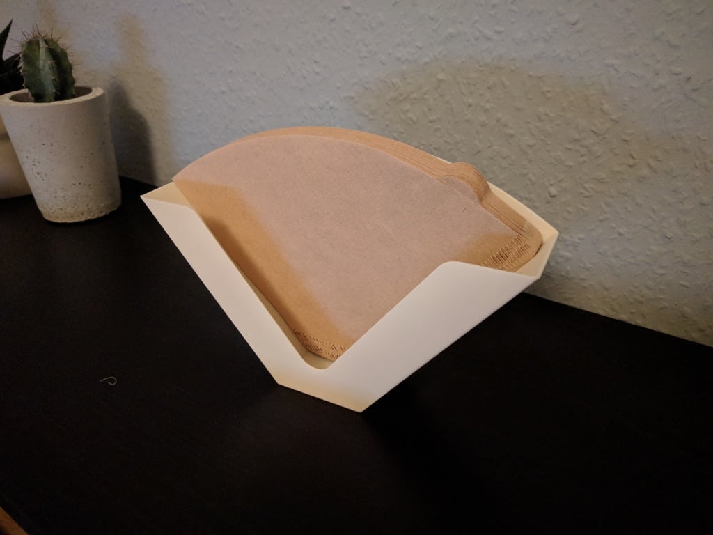 Hierbei handelt es sich um einen Halter für Kaffeefilter, der an der Innenseite eines Schranks oder an der Wand angeschraubt werden kann. Damit behalten Sie den Überblick über Ihre Kaffeefilter und sind leicht zugänglich, wenn Sie Kaffee zubereiten müssen.