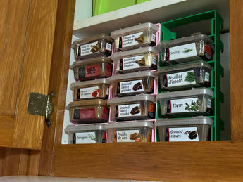 Das Dion-Gewürzregal bietet Platz für bis zu 5 Gewürzboxen und kann auf einem Regal oder darunter platziert werden. Diese praktische Organisation ermöglicht einen einfachen Zugriff auf Ihre Lieblingsgewürze und macht das Kochen einfacher und effizienter. Durch seine platzsparende Bauweise passt er perfekt in jede Küche, unabhängig von der Größe. Verleihen Sie Ihrem Kocherlebnis Struktur mit dem Dion-Gewürzregal, das hilft, Unordnung zu vermeiden und Ihre Gewürze organisiert zu halten.