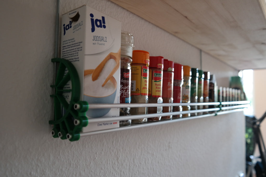 Das Gewürzregal besteht aus robusten M6-Aluminiumrohren und sorgt so für eine stabile und langlebige Konstruktion. Die integrierten M4-Gewindestangen und Muttern sorgen für zusätzliche Stabilität und halten Ihre Gewürze sicher an ihrem Platz. Die speziell entwickelten, bedruckten Verbinder erleichtern den Aufbau und sorgen für einen klaren, modernen Look, der in die meisten Küchen passt.