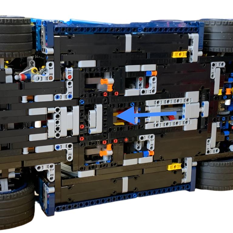 Dies ist eine einfache Wandhalterung für den LEGO 42083 Technic Bugatti Chiron. Es klemmt an einem ziemlich starken Punkt am Chassis, den Sie auf dem letzten Bild sehen können