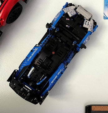 Dieser Halter dient zur Befestigung des LEGO McLaren Senna an der Wand. Verwendet 2x 3,5-mm-Schrauben zur Montage durch die Löcher. Dieser Halter ermöglicht es, das Auto für einen coolen Effekt in einem 55-Grad-Winkel an der Wand zu befestigen. Es wird in die offenen Räume unter dem Auto geschoben, die sich direkt unter den Sitzen und zwischen den beiden roten Stopfen an der Unterseite des Autos befinden.