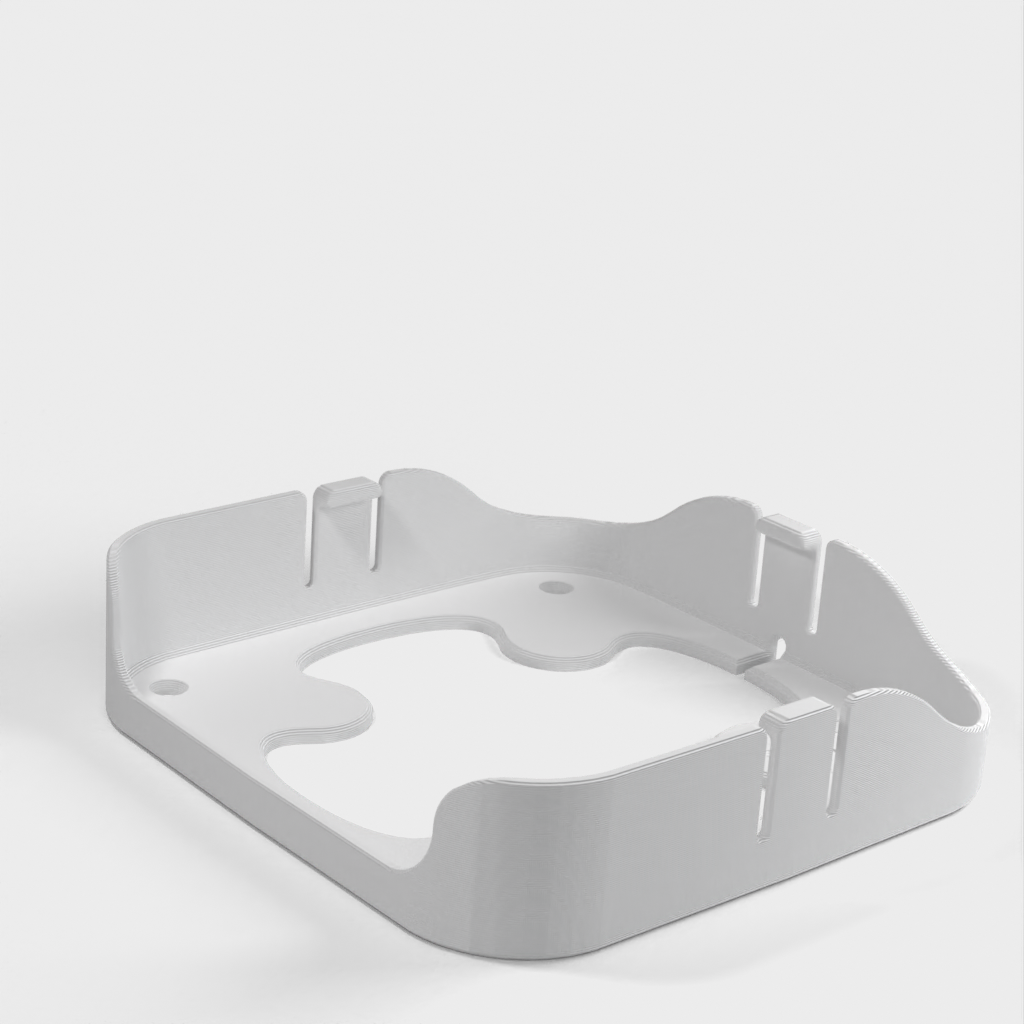 Eine Wandhalterung für den Netgear Nighthawk M5 5G Mobile Router. Die Wandhalterung ist sehr robust und bietet an der Unterseite ausreichend Platz zum Anschluss von USB-C-, Ethernet- und Antennenkabeln.