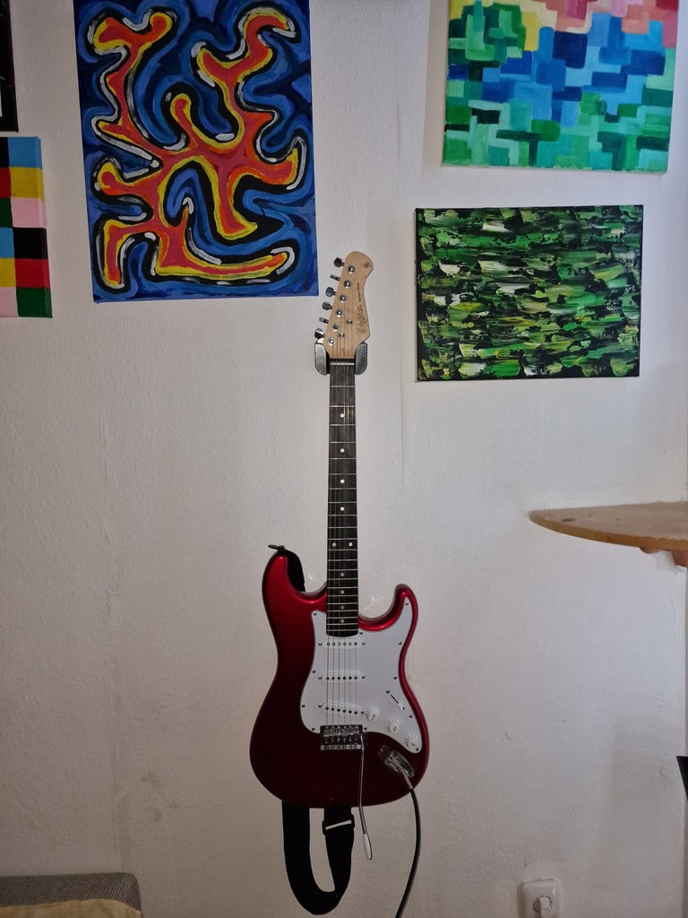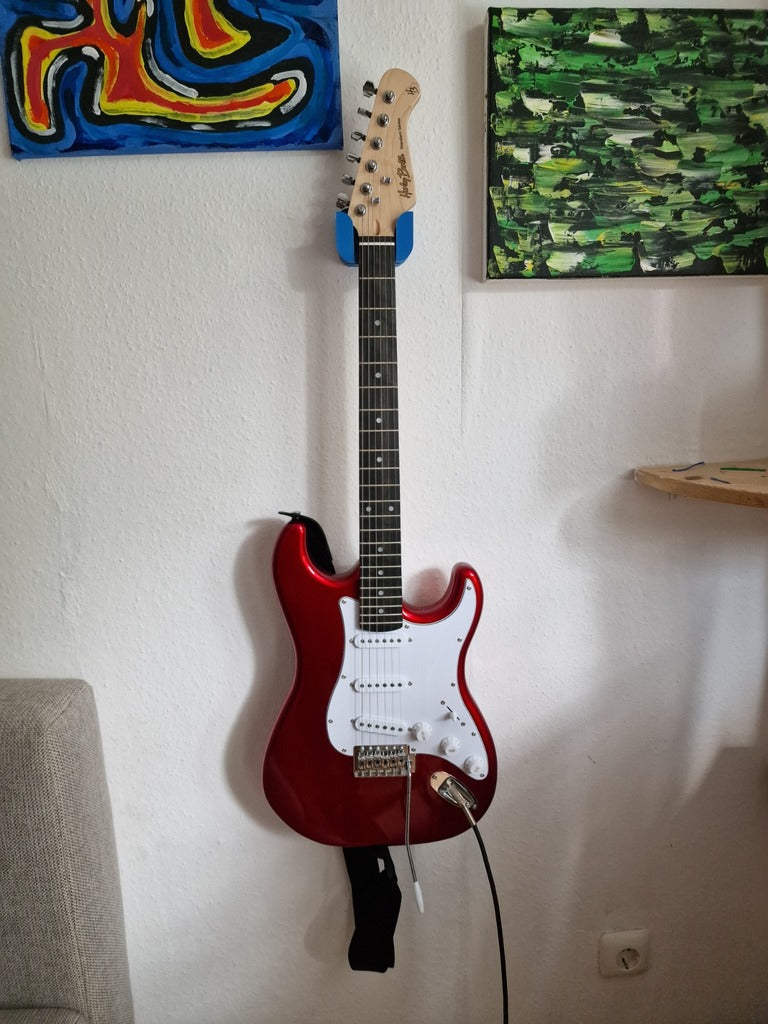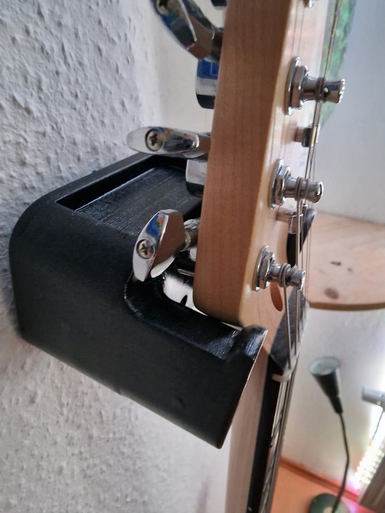 Dieser Gitarrenhalter ist mit einem zusätzlichen dritten Loch für Schrauben und einem praktischen Platz zum Aufbewahren von Plektren oben ausgestattet. Durch das original solide Design kann Ihre Gitarre einfach und sicher getragen werden.