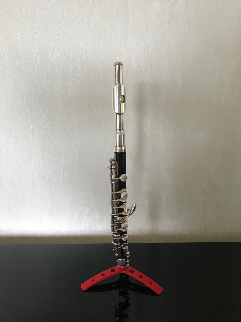 Dies ist ein Piccolo-Ständer, der für mehr Sicherheit sehr zuverlässig ist. Die Piccolo lässt sich einfach in den Ständer stellen und sorgt so für eine organisiertere und sicherere Aufbewahrung Ihrer Musikausrüstung.
