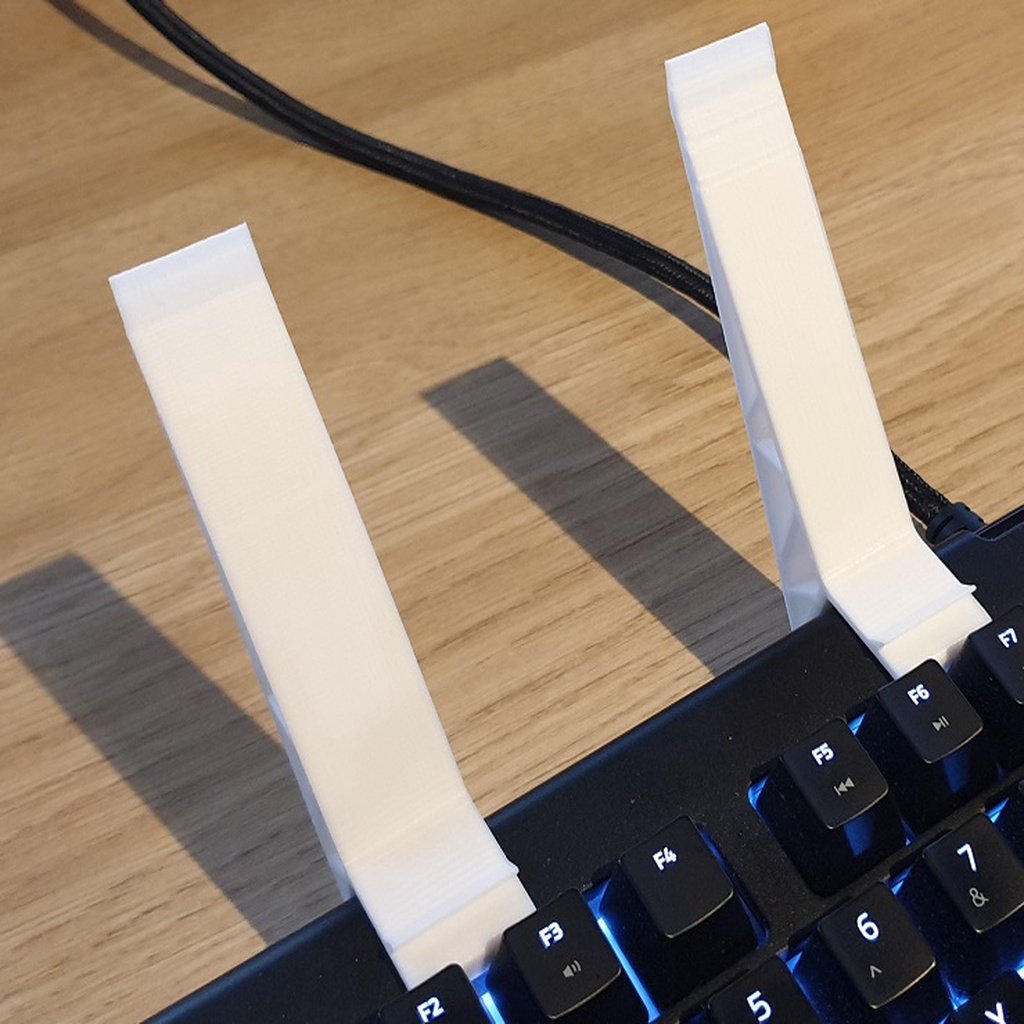 Dies ist eine Stream Deck-Tastaturhalterung, die speziell für die Verwendung mit der Razer Blackwidow Chroma v1- und v2-Tastatur entwickelt wurde. Mit der Halterung können Sie zwei Stream Decks direkt auf der Rückseite Ihrer Tastatur montieren, um einen einfachen Zugriff und ein effizienteres Streaming-Erlebnis zu gewährleisten. Es ist so konstruiert, dass es mit beiden Tastaturbeinen nach oben und nach unten funktioniert und kann möglicherweise auch mit anderen Tastaturen verwendet werden, die einen ähnlichen Abstand zwischen den F-Tasten haben. Maßgeschneidert für Ihr Gaming-Setup.