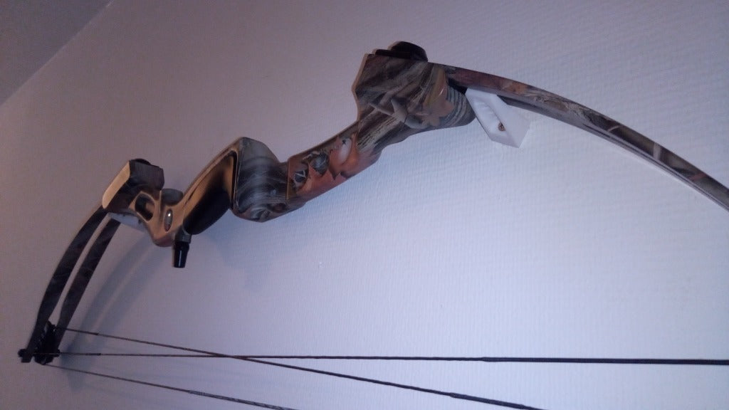 Universelle Wandhalterung, ideal für Ihren Recurve- oder Compoundbogen, oder auch als Hutablage. Die Installation ist einfach, indem Sie die beiden Löcher für Schrauben in der Mitte der Halterung nutzen. Die Halterung hat eine Armbreite von 4,5 cm und passt daher perfekt auf die meisten Bögen. Diese Wandhalterung ist die perfekte Aufbewahrungslösung und hält Ihren Bogen oder Snapback sicher und organisiert an der Wand.