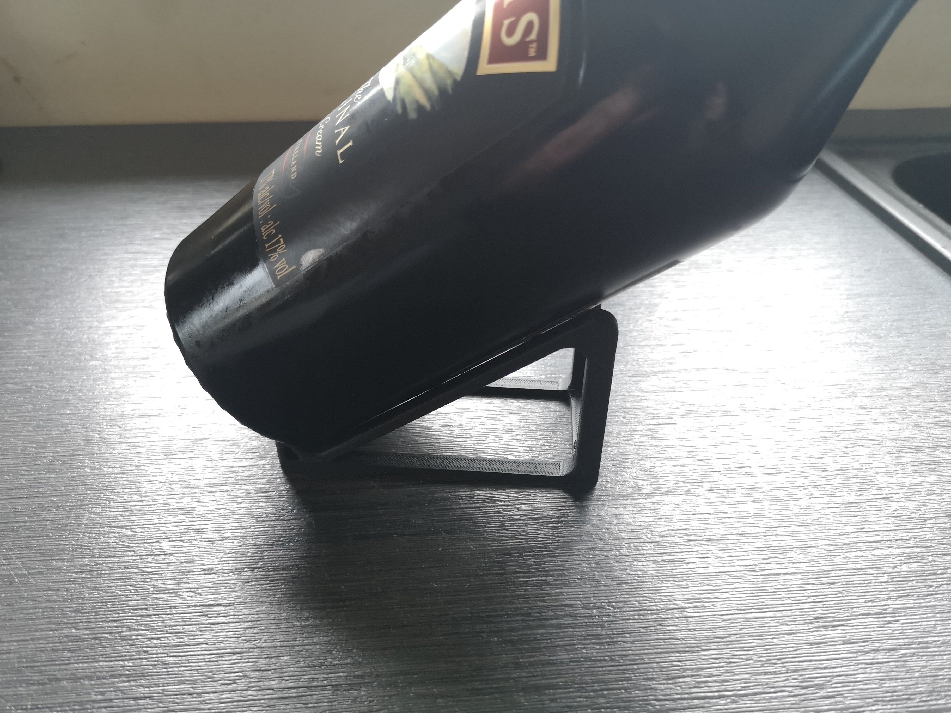 Dieser Flaschenständer präsentiert Ihre Flaschen auf einzigartige und stilvolle Weise. Die Flasche wird in einem 35°-Winkel platziert, wodurch der Inhalt hervorgehoben wird, ohne dass der Ständer den Fokus auf sich zieht. Das Design ist bewusst minimalistisch und dezent, sodass die Flasche im Mittelpunkt steht.