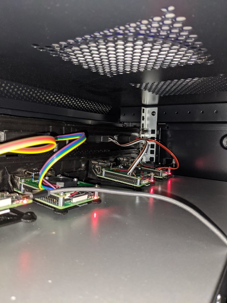Die Halterung ist passend für Ihren Drucker in zwei Teile unterteilt und verfügt über zusätzliche Halterungen für die Pis. Diese Quad Raspberry Pi-Rackhalterung funktioniert nahtlos sowohl mit offiziellen PoE-Netzteilen als auch mit USB-Anschlüssen. Die mit der Ringkappe gelieferten Schrauben sind möglicherweise etwas kurz, sodass Sie möglicherweise die unteren Löcher bohren müssen, um sie in die Abstandshalter zu schrauben.