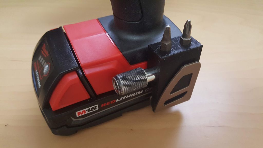 Bithalter für den Gürtelclip einer Milwaukee M18 Bohrmaschine.