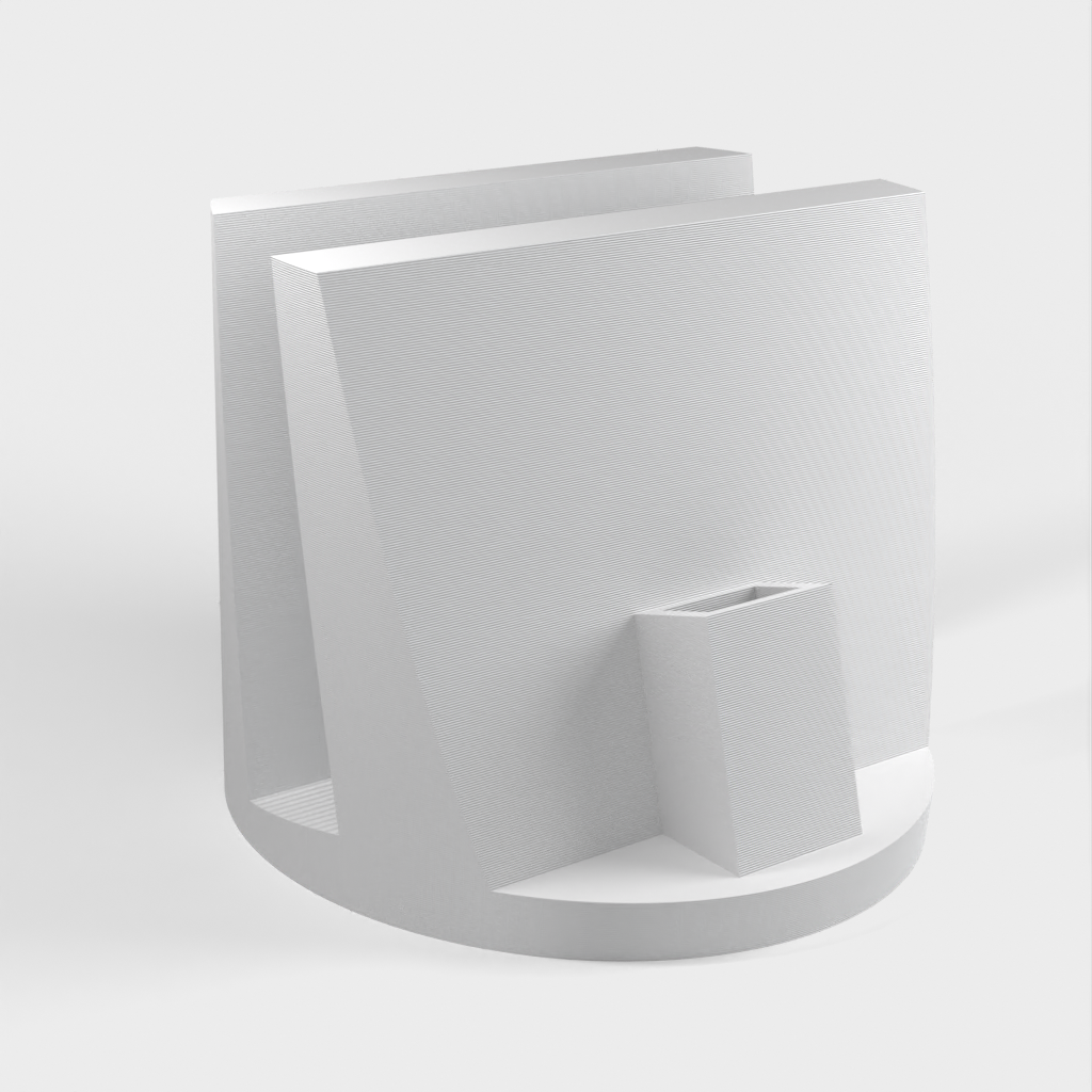 Einfacher Halter für den Getränkehalter Ihres Autos, der Ihr Telefon hält. Der Halter hat auch ein kleines Fach, um das Ladekabel zu halten, damit es nicht schwimmen muss.