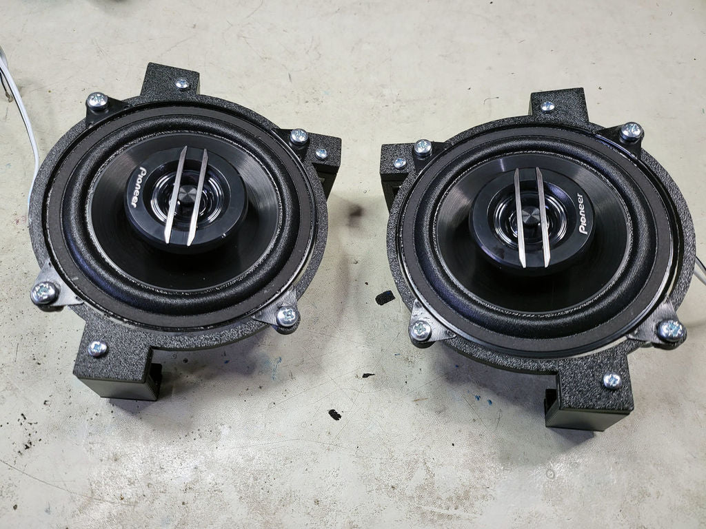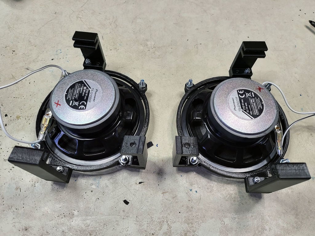 Renault Twizy-Lautsprecherhalterungen sind ein Satz Lautsprecherhalterungen, die für den Renault Twizy entwickelt wurden. Die Halterungen sind speziell für die perfekte Passform mit 4-Zoll-Pioneer-TS-G1020F-Lautsprechern gefertigt. Sie werden an der ursprünglichen Halterungsposition des Fahrzeugs im Dach platziert.