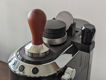 Es wird mit einem praktischen Werkzeughalter für zwei 51-mm-Werkzeuge geliefert, sodass Sie sowohl das WDT-Werkzeug als auch zwei Puck-Siebe aufbewahren können. Dieses Zubehör sorgt nicht nur für eine schönere Oberfläche, sondern auch dafür, dass Sie beim Zubereiten Ihrer perfekten Tasse Kaffee alles zur Hand haben.