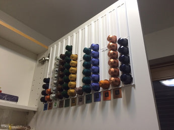 Dieser praktische Nespresso-Kapsel-Wandhalter dient der effizienten und eleganten Organisation Ihrer Kaffeekapseln in der Küche. Mit Platz für bis zu 10 Nespresso-Kapseln bietet er Ihnen eine übersichtliche Aufbewahrungslösung, die Platz auf der Arbeitsplatte spart und Ihre Lieblingssorten griffbereit hält.