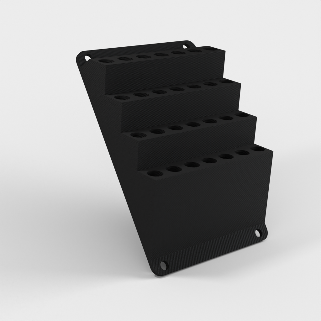 6,35 mm (1/4") Schraubendreher-Bithalter zur Montage an der Wand. Das Produkt enthält eine untere Reihe für längere Bits, während der Rest für normale kurze Bits verwendet wird. Dies erleichtert die Aufrechterhaltung der Ordnung in Ihrer Werkstatt, Ihrem Schuppen oder Arbeitsfahrzeug.