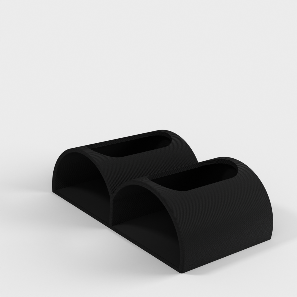Dieser praktische Wandhalter bietet einen festen und übersichtlichen Platz für Ihre Fernbedienungen von Roku TV und Vizio Soundbar. Mit dieser Lösung vermeiden Sie lästiges Suchen und Frust, da Ihre Fernbedienungen immer griffbereit sind. Der Halter wird diskret an der Seite eines Beistelltisches oder einer ähnlichen Oberfläche befestigt, üblicherweise mit doppelseitigem Klebeband. So bleiben Ihre Fernbedienungen griffbereit, aber unsichtbar. Dies trägt zu einem aufgeräumten und organisierten Wohnumfeld bei, in dem Funktionalität auf Ästhetik trifft.