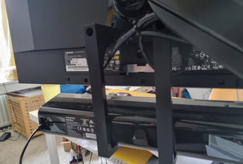Für maximale Stabilität, insbesondere wenn Ihr Monitor an einem dynamischen Arm montiert ist, kann es hilfreich sein, etwas doppelseitiges Klebeband auf die Regaloberfläche aufzutragen, um ein Verrutschen der Soundbar zu verhindern. Diese Lösung ist ideal für alle, die ihre Audiogeräte nahtlos in ihr Monitor-Setup integrieren und ein sauberes und professionelles Erscheinungsbild erzielen möchten.