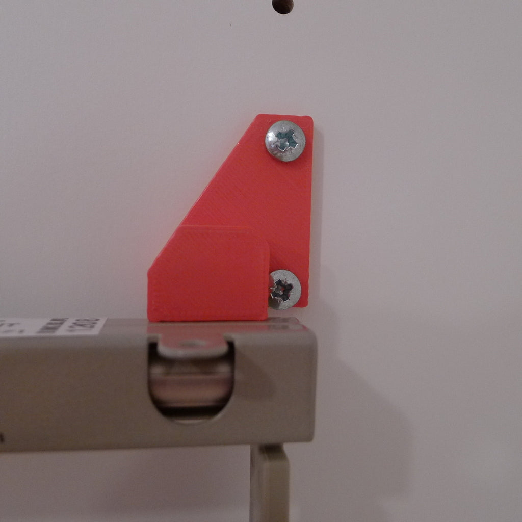 Halterungen für den ausziehbaren Kleiderständer IKEA PAX KOMPLEMENT. Diese Halterungen dienen zur Anpassung der KOMPLEMENT-Schiene an die 32-mm-Regalbolzen am Schrank. Sie werden verwendet, um die Schienen an der Seite des Schranks und nicht an der Unterseite eines Regals zu befestigen. Dies bietet eine praktischere Möglichkeit, Kleidung in Ihrem PAX-System zu organisieren.