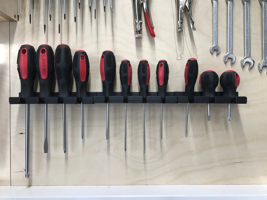 Der Schraubendreherhalter ist die beste Lösung, um Ihre Schraubendreher zu organisieren und in Ordnung zu halten. Durch die einfache Aufbewahrung Ihrer Schraubendreher sind sie bei Bedarf leicht zugänglich. Über den mitgelieferten Onshape-Link lässt sich der Halter je nach Bedarf verstellen und eignet sich somit sowohl für private Werkstätten als auch für professionelle Arbeitsplätze.