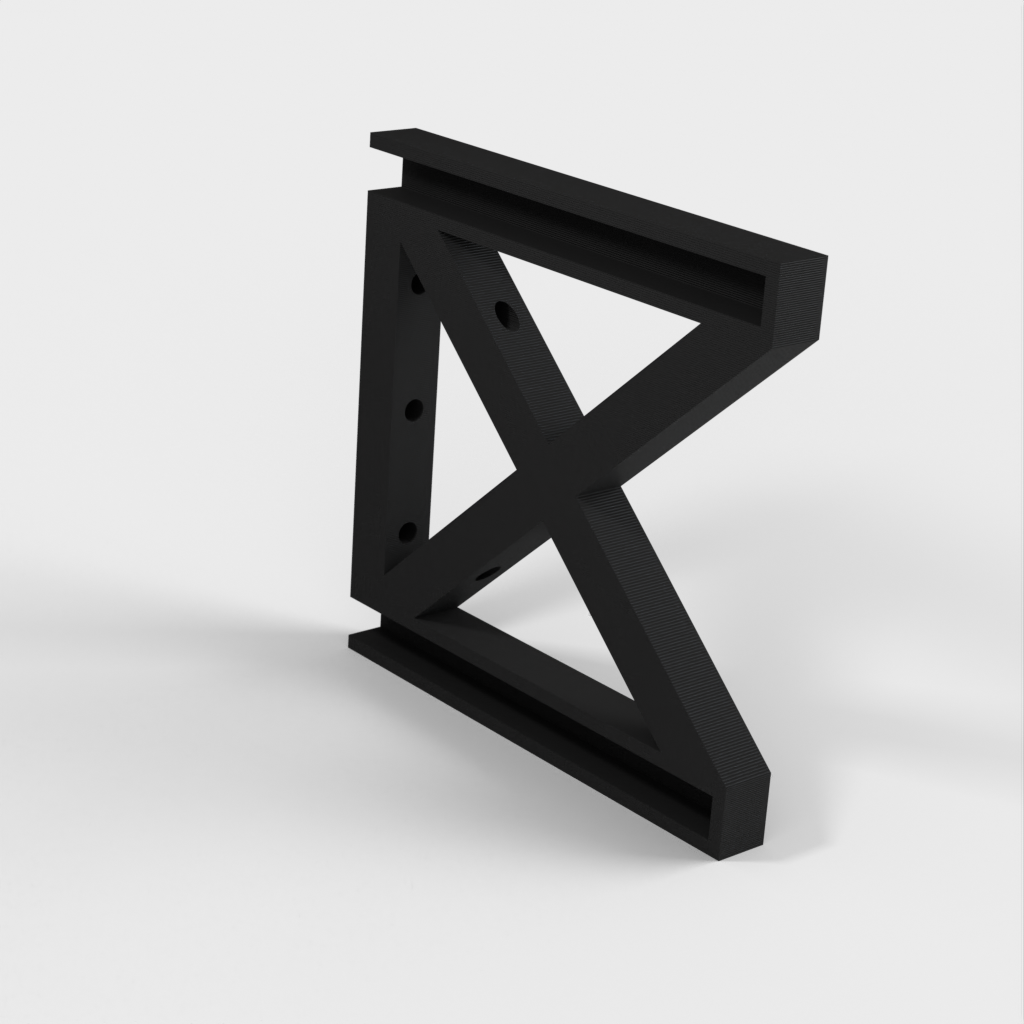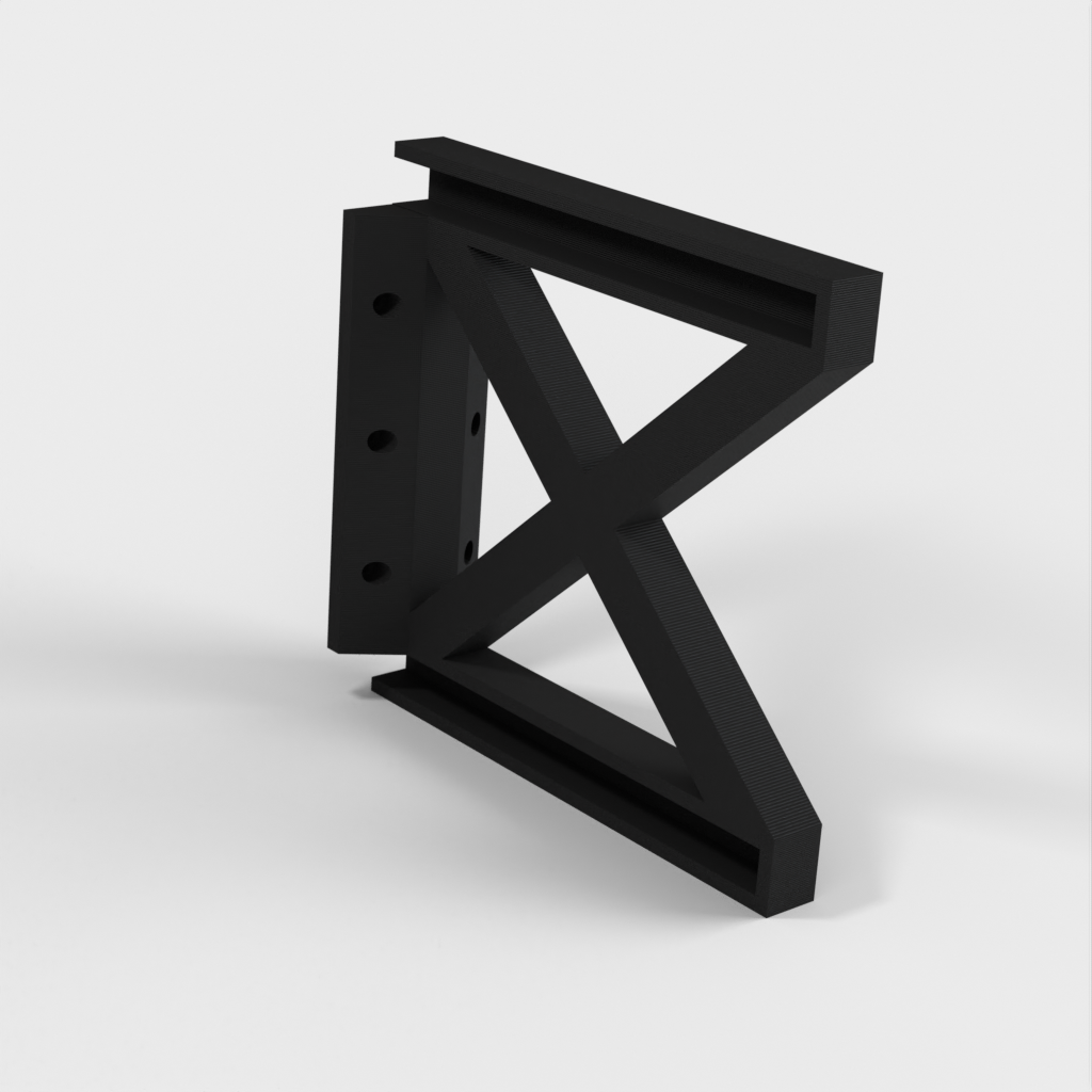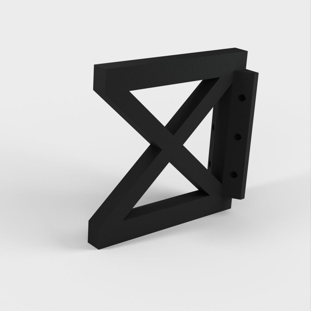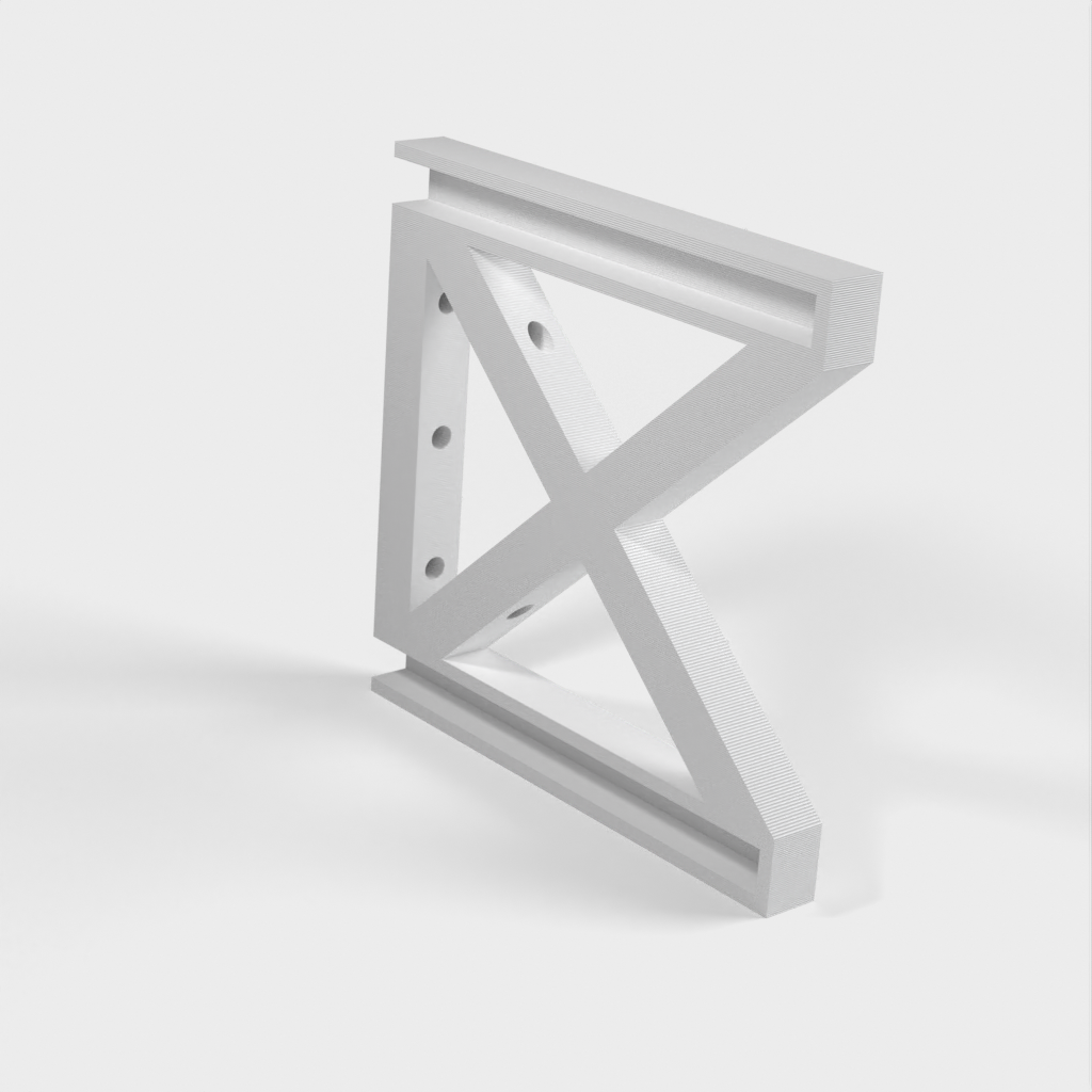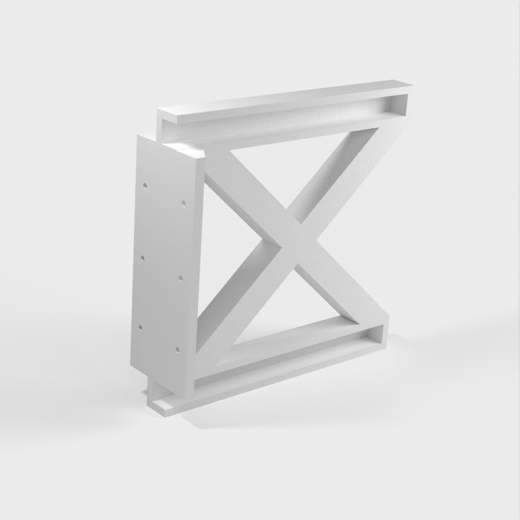 Diese Regalhalterung ist so konzipiert, dass sie zu Ikea-Burhult-Regalen passt, passt aber auch zu jedem Regal mit den gleichen Abmessungen. In die Schraubenlöcher der Halterung passen Schrauben mit einer Kopfbreite von 8,5 mm und einer Gewindebreite von 4 mm. Um sicherzustellen, dass das Regal nicht von der Wand fällt, müssen Sie Dübel verwenden. Für die Herstellung von 4 dieser Klammern benötigen Sie etwa 1 kg Filament. Die Abmessungen der Halterung betragen 200,5 mm x 196,85 mm x 20,25 mm.