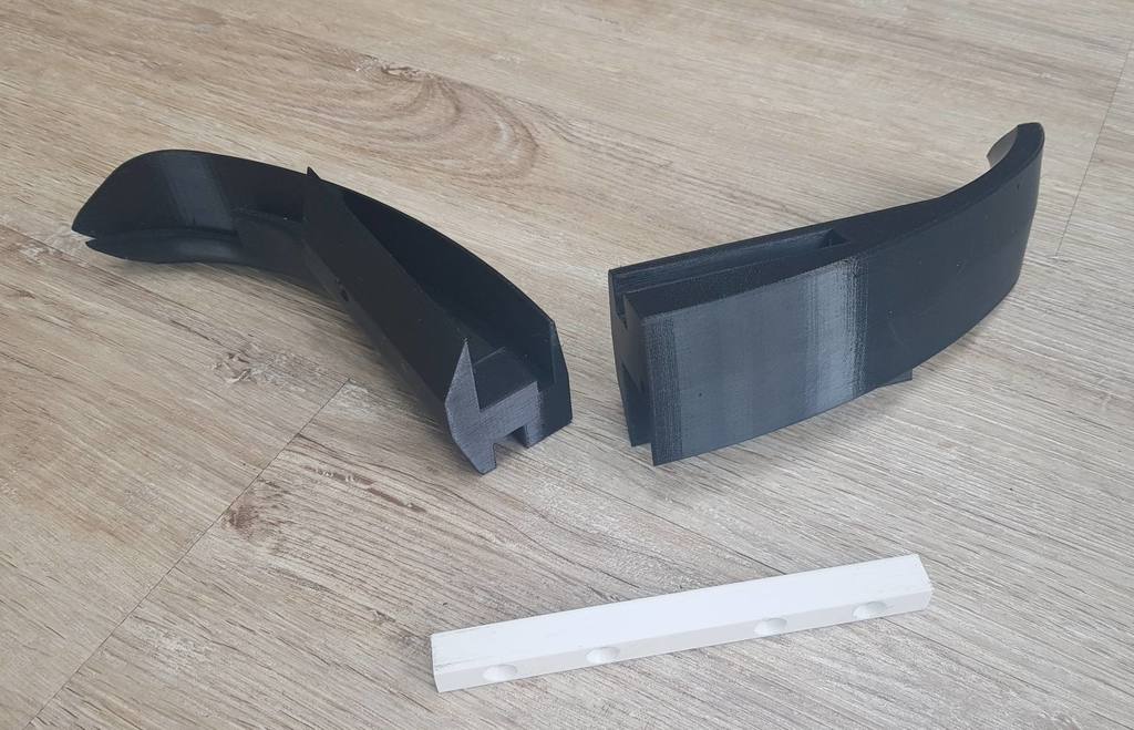 Da der Stoßfänger für meinen Drucker zu groß ist, um ihn in einem Stück zu drucken, ist er in Teile und ein Mittelstück unterteilt, um alles zusammenzuhalten.