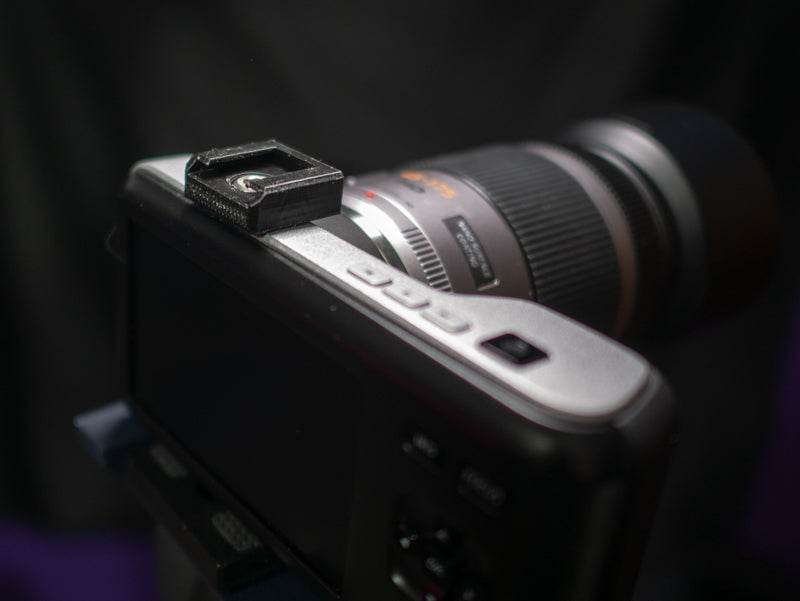 Dieses spezielle Teil wurde entwickelt, weil meine Blackmagic Design Pocket Cinema Camera keinen Blitzschuh/Kaltschuh hat. Es verfügt jedoch über einen oberen 1/4-20-Befestigungspunkt. Anstatt eines davon bei Amazon zu kaufen und auf die Lieferung zu warten, habe ich schnell eines in Fusion 360 entworfen.