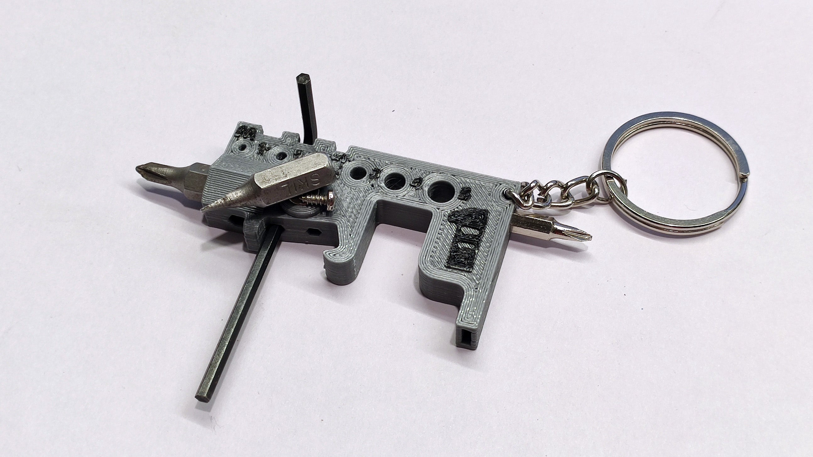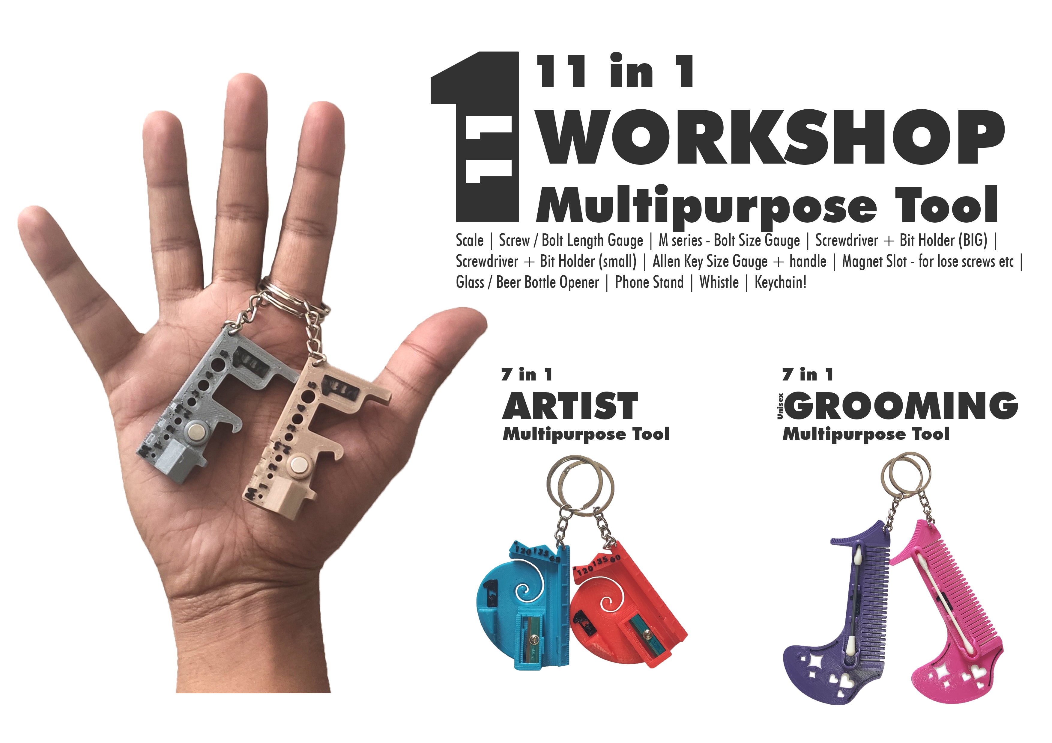 Dies ist ein sehr vielseitiges Werkzeug mit 11 Funktionen, das in Ihre Tasche passt. „11 in 1 – Werkstatt-Multifunktionswerkzeug“ enthält Skala, Schrauben-/Bolzenlängenlehre, M-Serie – Schraubengrößenlehre, Schraubendreher + Bithalter (groß), Schraubendreher + Bithalter (klein), Inbusschlüsselgrößenlehre + Griff, Magnetschale – für verlorene Schrauben etc., Glas-/Bierflaschenöffner, Handyhalter, Pfeife und Schlüsselring!