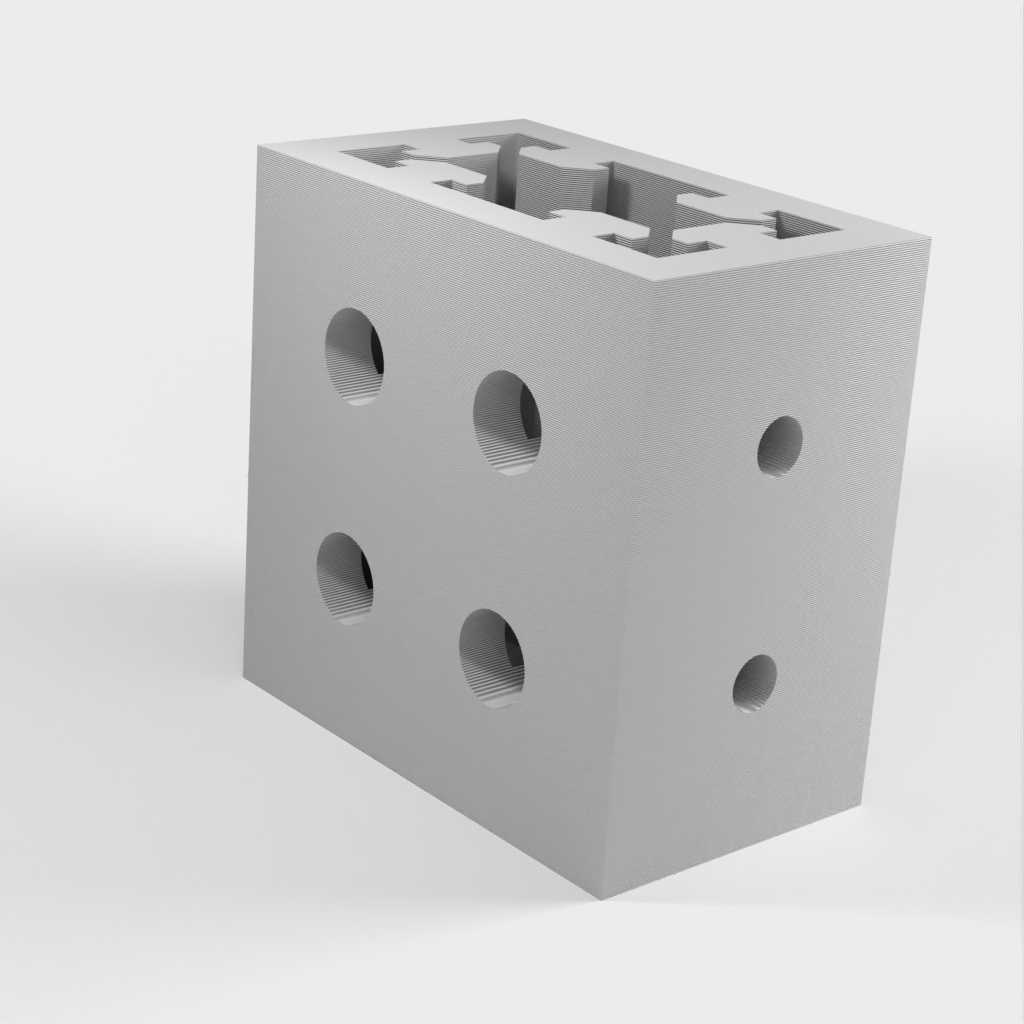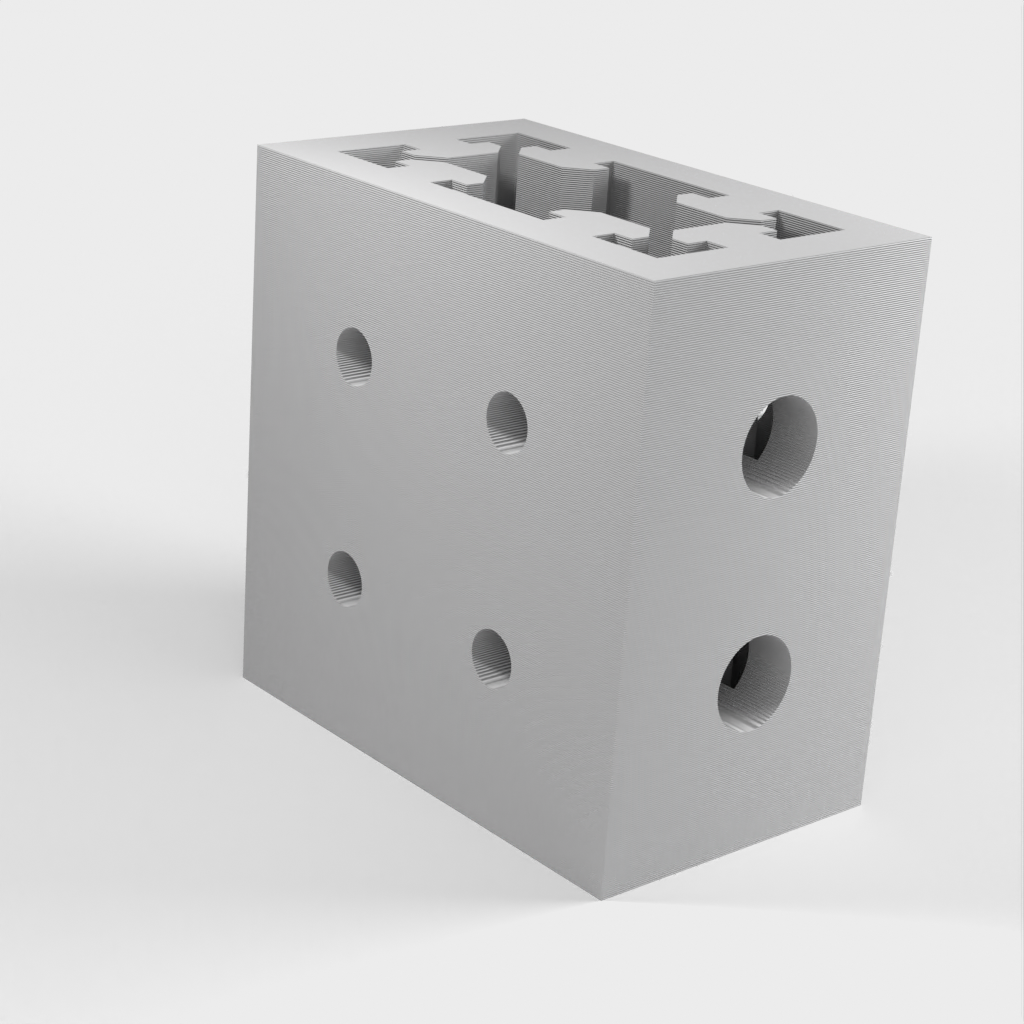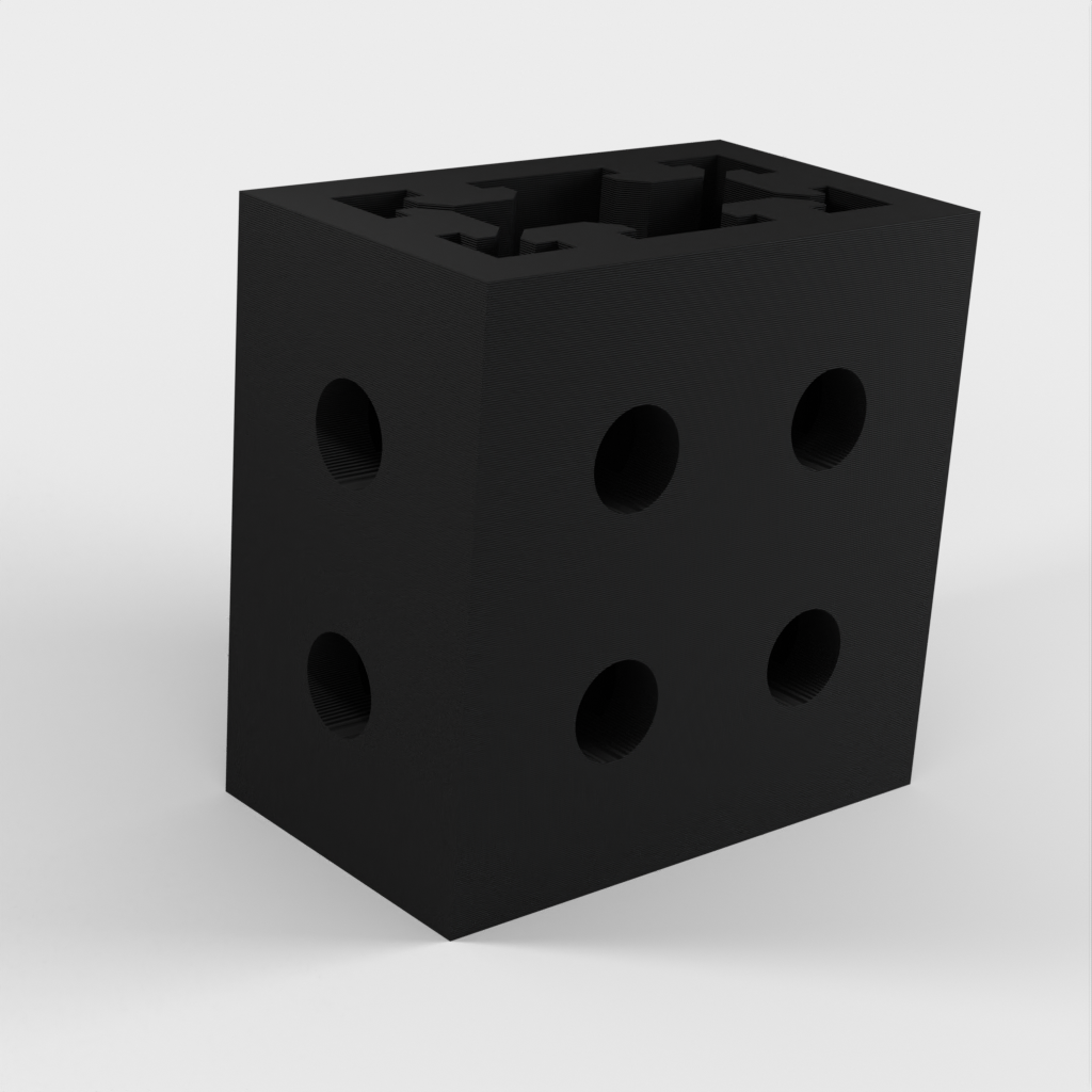 Dieses verstellbare Bohrführungswerkzeug ist ideal für T-Nut- und V-Nut-Profile. Unsere Bohrschiene hilft beim präzisen Bohren von Bolzen und Bolzenkappen. Diese Bohrführung ist für 5-mm-Löcher auf der einen Seite zum Bohren des Bolzens und 8,3-mm-Löcher auf der anderen Seite zum Bohren der Bolzenkappe ausgelegt. Es ist auch praktisch, um das Schneiden von Gewinden am Ende der Extrusion zu erleichtern. Um optimale Ergebnisse zu erzielen, muss das Profil vollständig eingeführt werden.