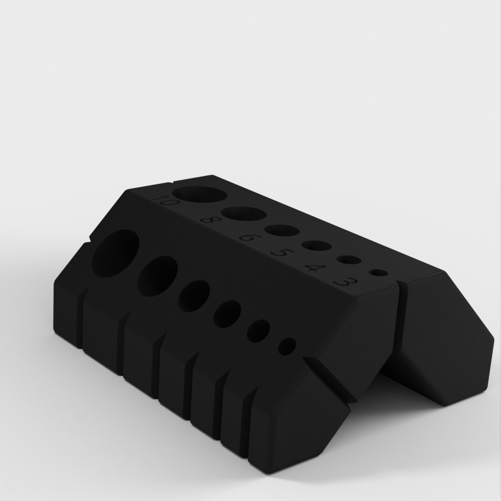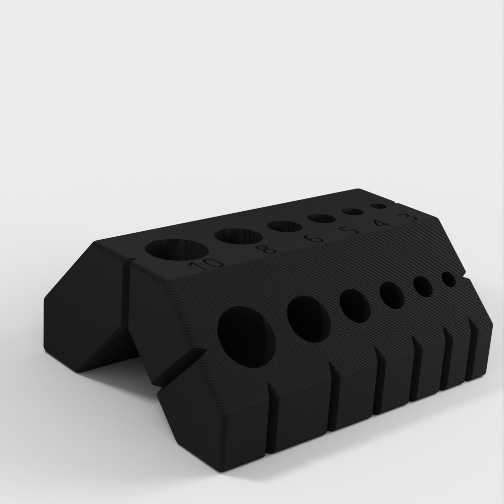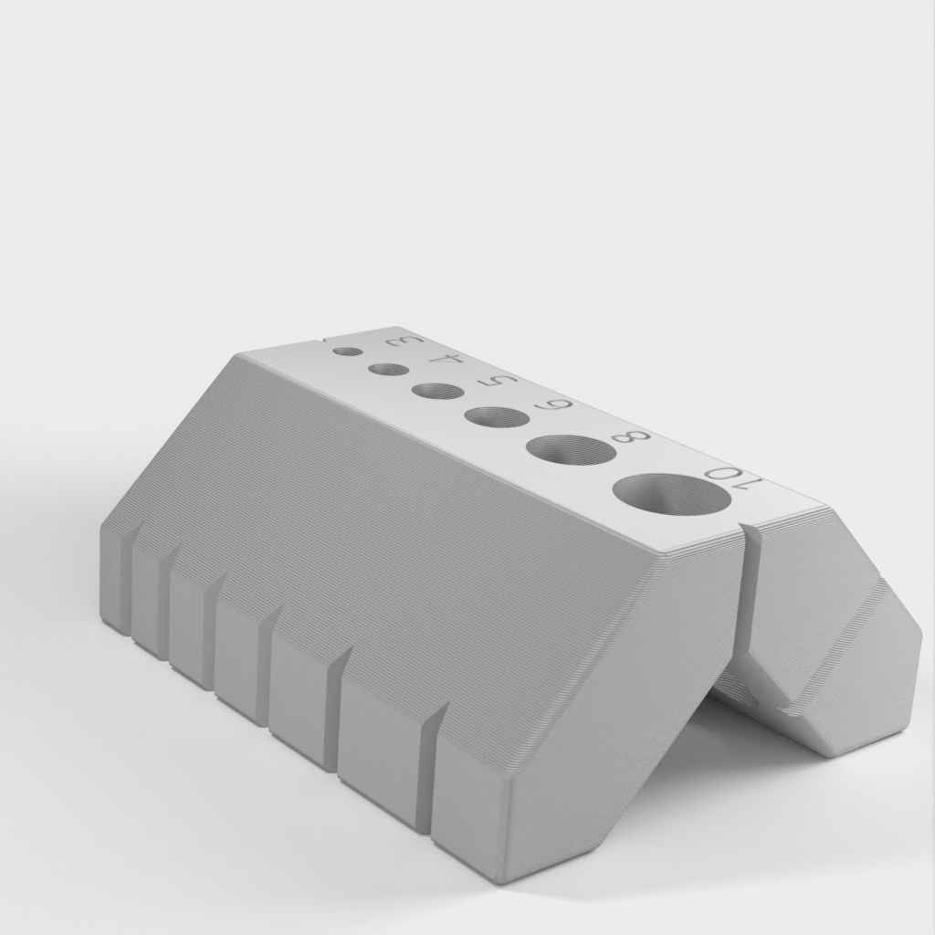 Diese benutzerfreundliche 90- und 45-Grad-Bohrführung soll Ihnen das Bohren an Kanten und Stangen erleichtern. Es verfügt außerdem über eine besondere Funktion, die es Ihnen ermöglicht, perfekt positioniert in der Mitte von 2 cm Holz zu bohren.