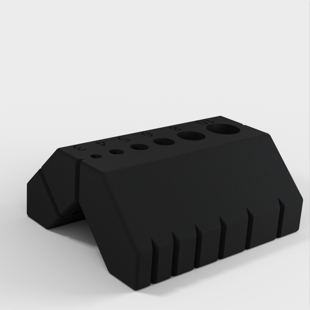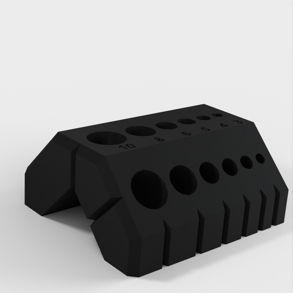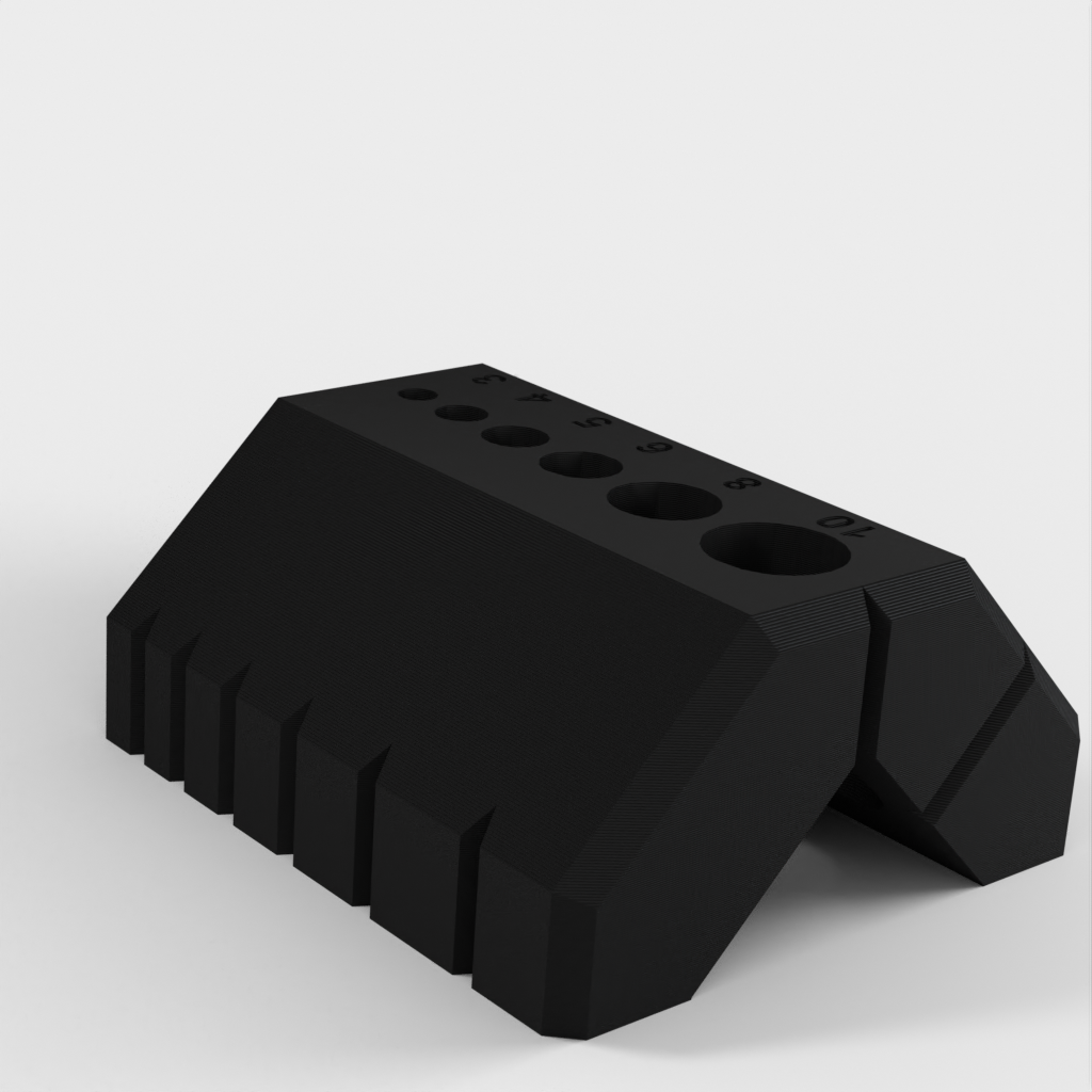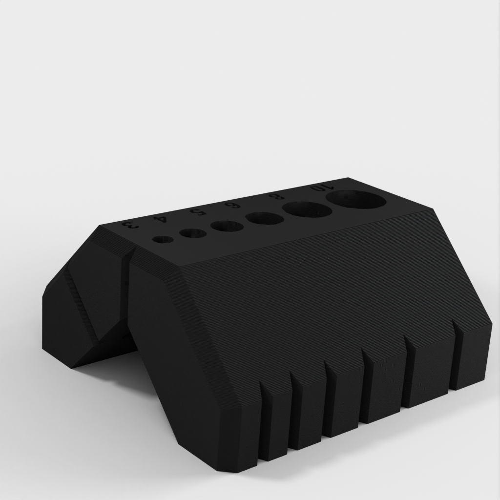 Diese benutzerfreundliche 90- und 45-Grad-Bohrführung soll Ihnen das Bohren an Kanten und Stangen erleichtern. Es verfügt außerdem über eine besondere Funktion, die es Ihnen ermöglicht, perfekt positioniert in der Mitte von 2 cm Holz zu bohren.