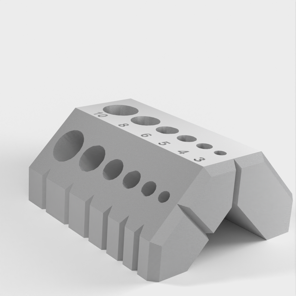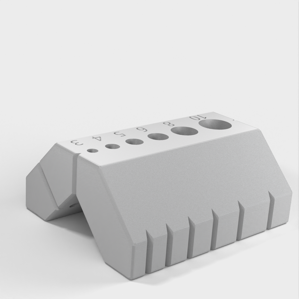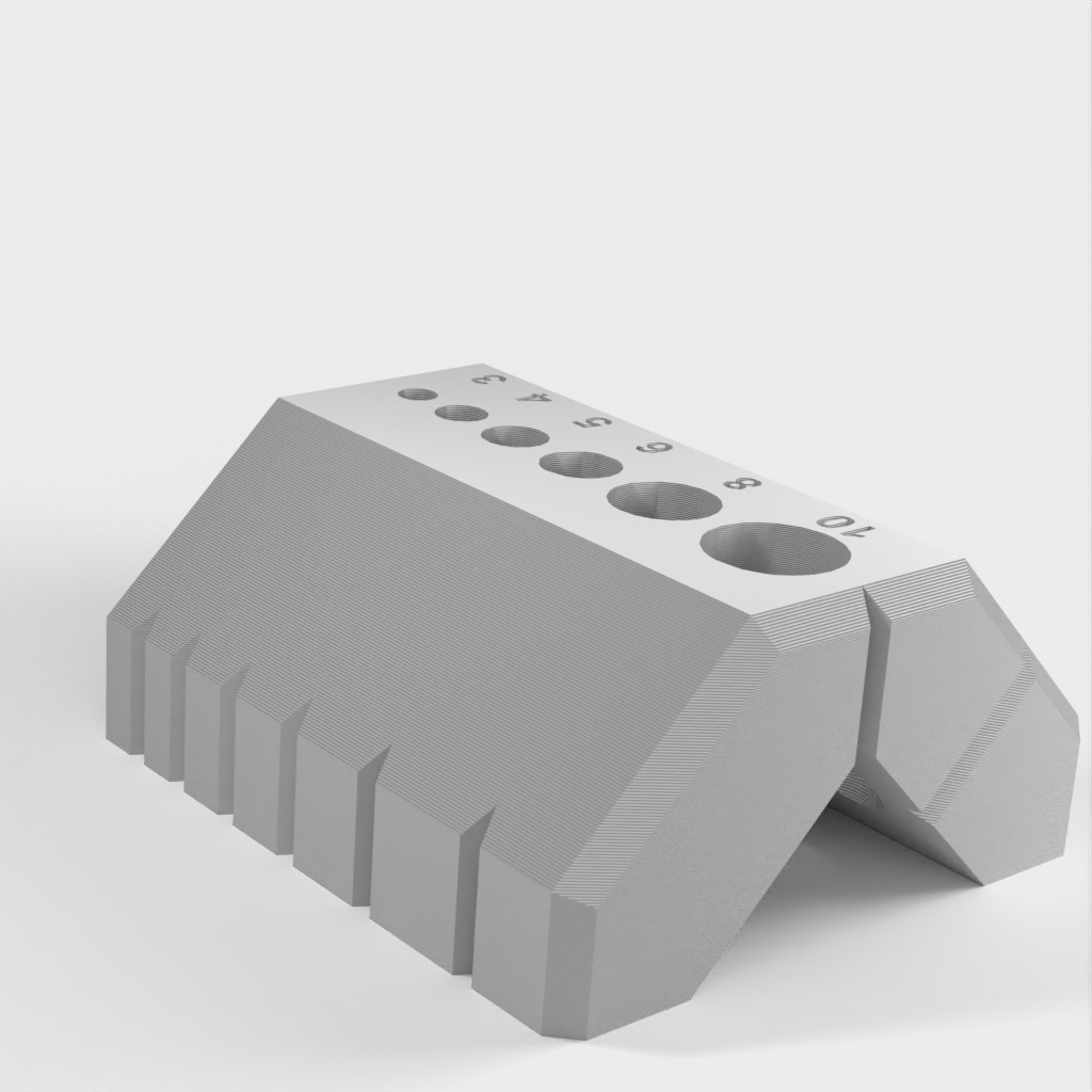 90- und 45-Grad-Bohrführung mit Stegen, Kanten und Seiten von 2 cm