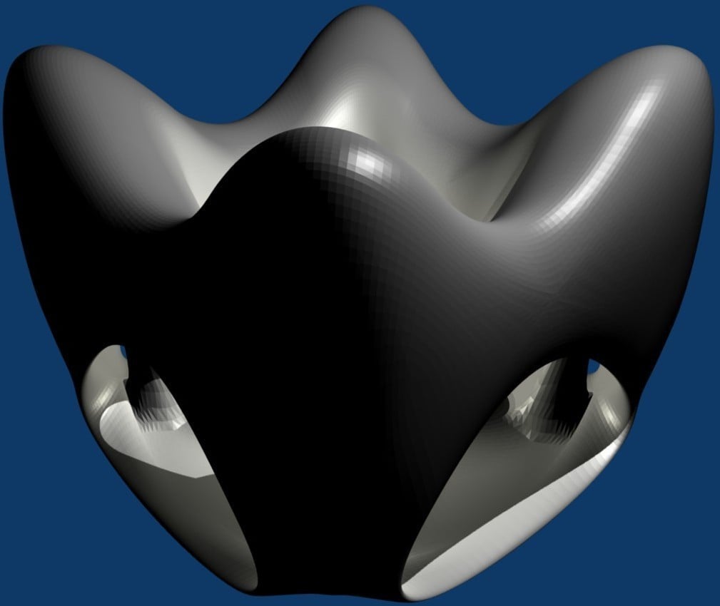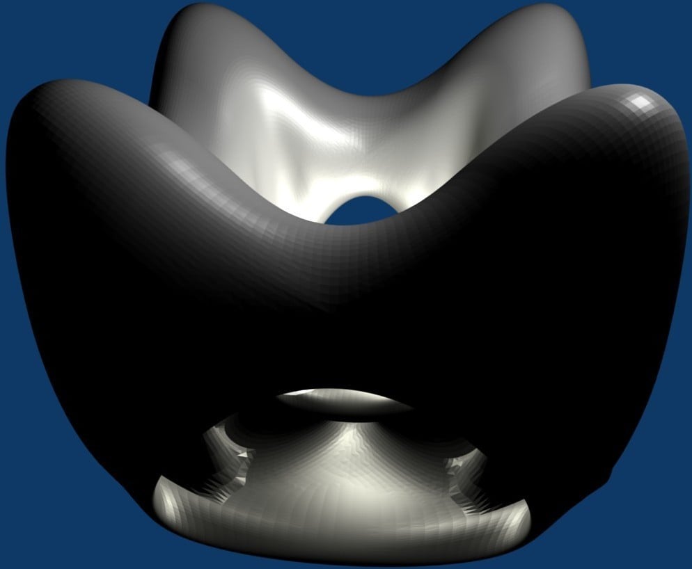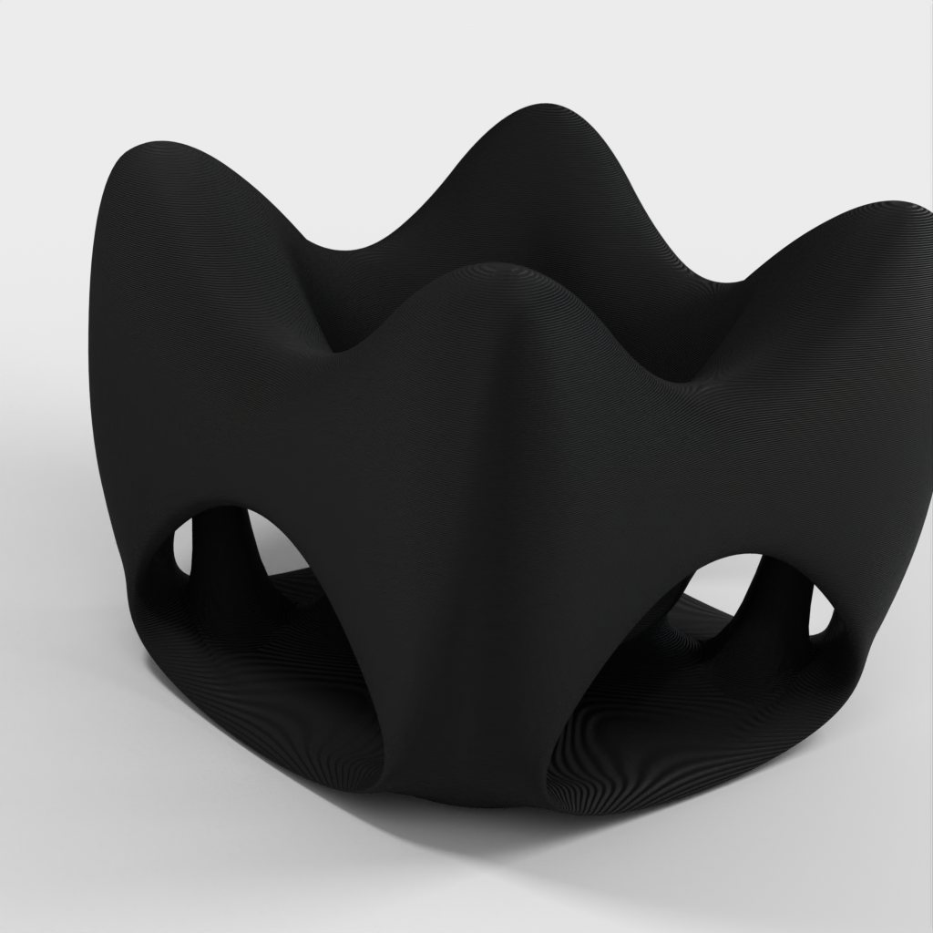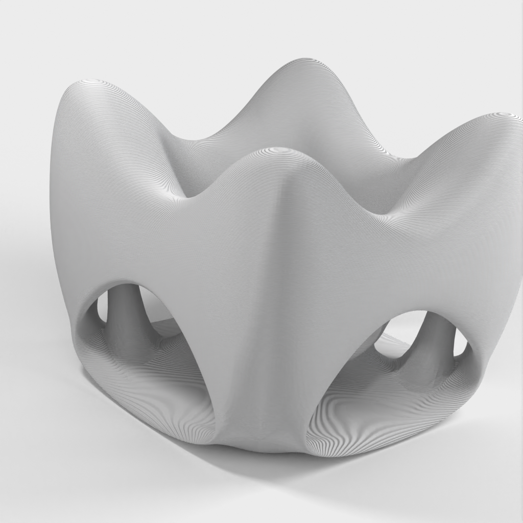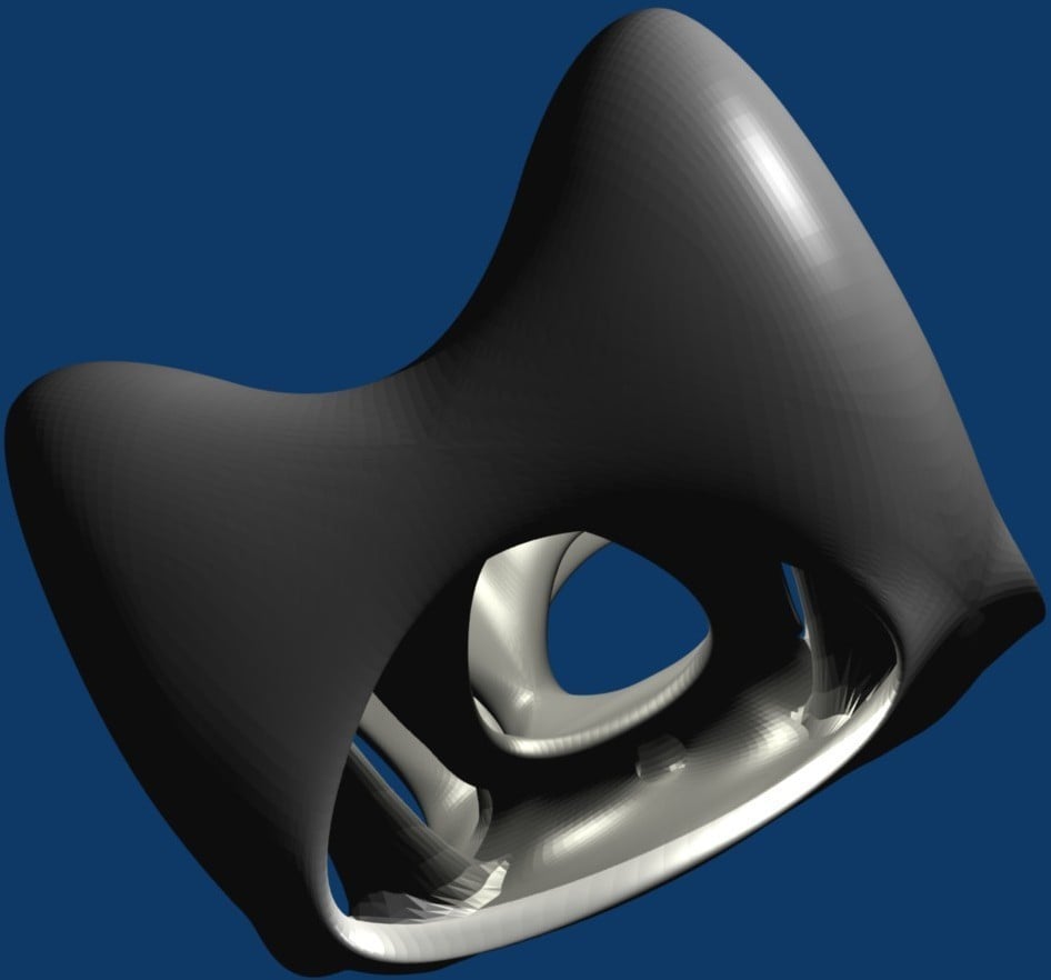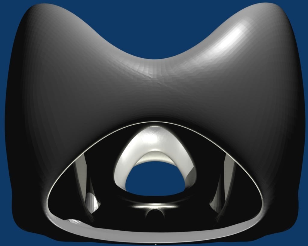 Die äußere Hülle ist glatt und weist ein paar sanft abgerundete Löcher auf. Sie wird jedoch von Säulen gehalten, die im Inneren halb verborgen sind, wie der Boden des Brunnens in der Mitte.