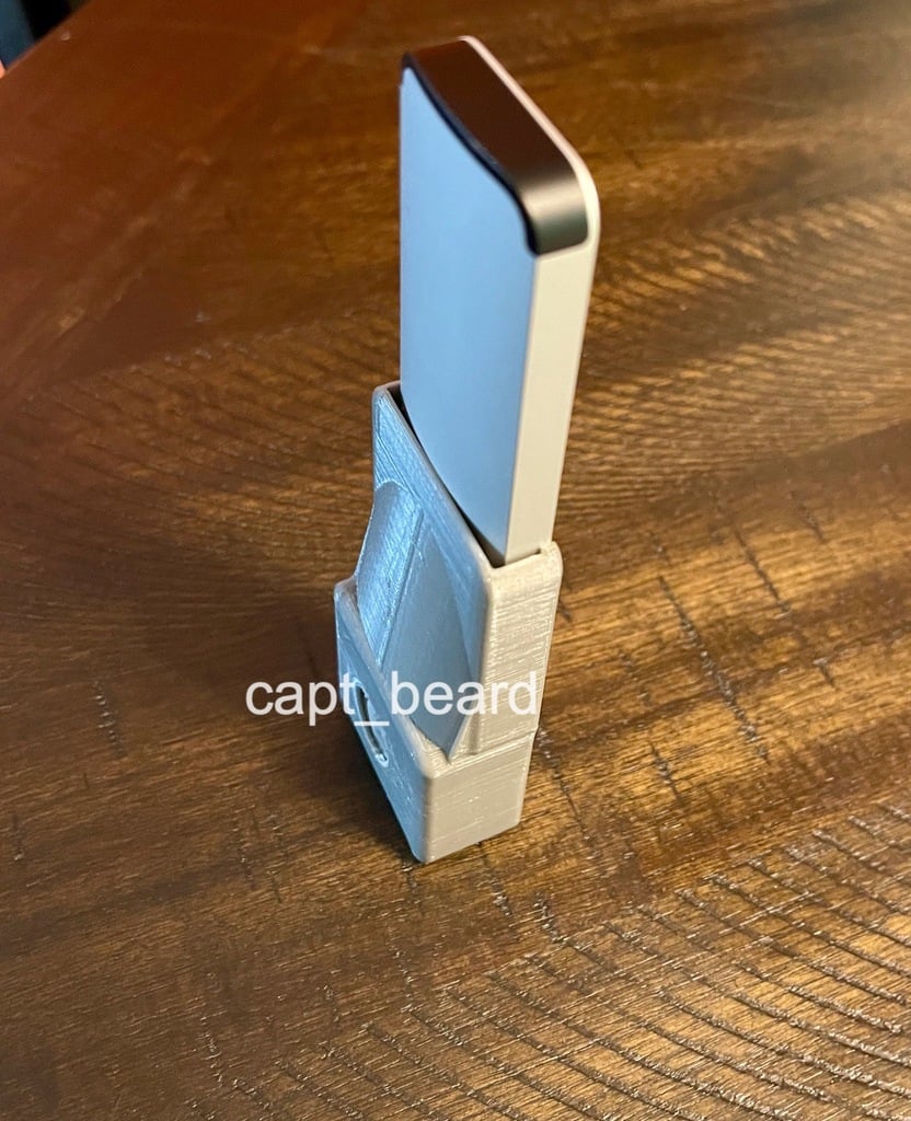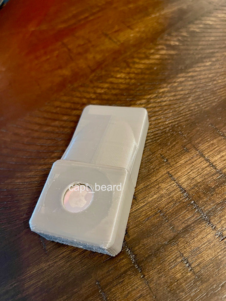Das Apple TV Remote AirTag Case ist ein speziell entwickelter AirTag-Halter für die neue (2021) Siri Remote für Apple TV. Der AirTag passt perfekt in den runden Teil an der Basis. Auf der Rückseite befindet sich ein Loch, um den AirTag einfach zu entfernen. Die Fernbedienung wird hineingeschoben und durch Reibung festgehalten.