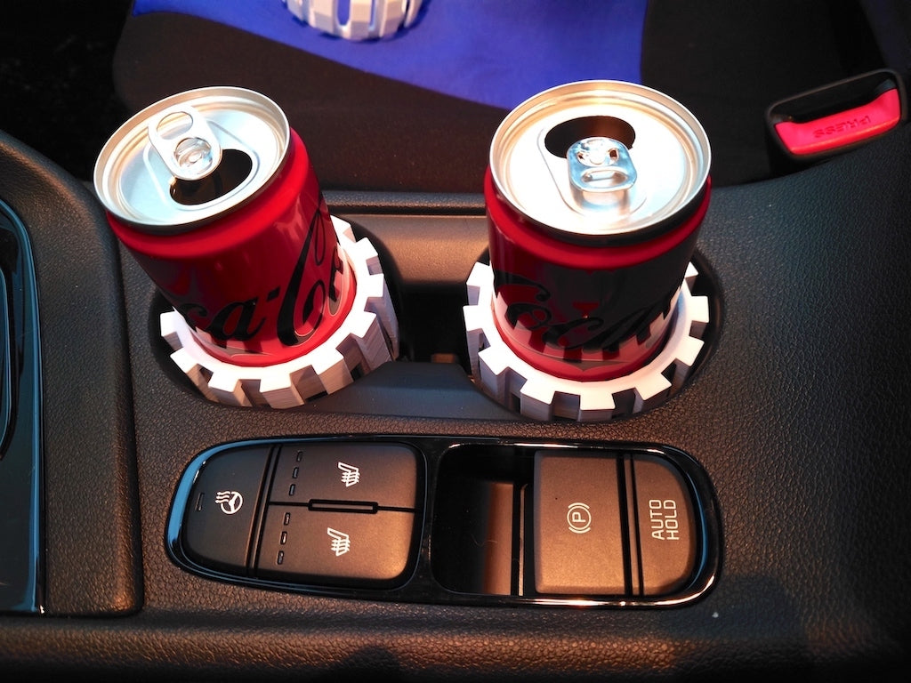 Schlichter und elegant gestalteter Getränkehalter-Adapter für die neuen schmalen Coca-Cola-Dosen, damit Sie auch während der Fahrt problemlos eine kalte Cola genießen können. Der Adapter hält die Dose sicher im Getränkehalter und verhindert so ein Umkippen während der Fahrt.