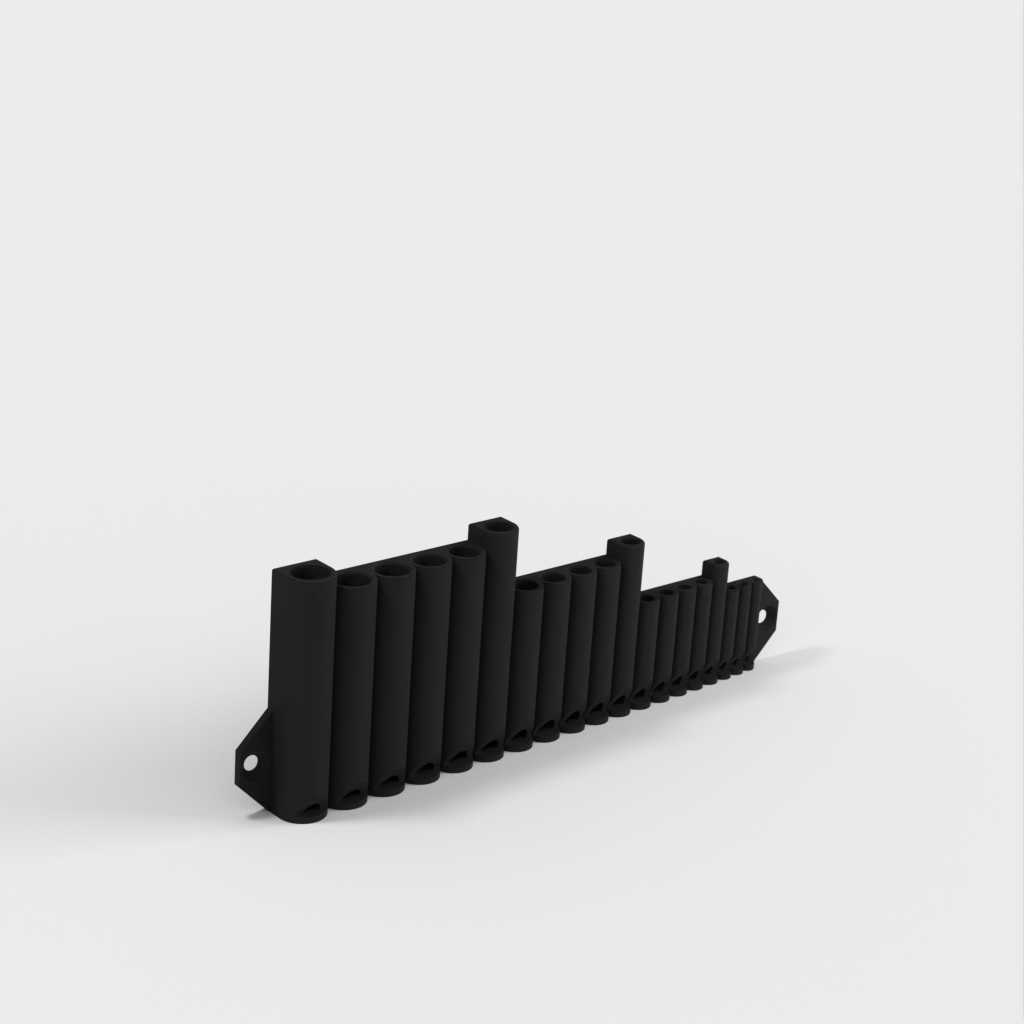 Dieser kompakte Bohrerhalter kann entweder direkt an der Wand montiert oder in Ihrem Werkzeugkasten platziert werden. Mit diesem Halter behalten Sie den Überblick über Ihre Bohrer mit einem Durchmesser zwischen 1 mm und 10 mm, in 0,5 mm-Schritten (z. B. 1,5 mm, 2 mm, 2,5 mm usw.). Zur besseren Erkennbarkeit sind die Löcher für Bohrer der Größen 2,5 mm, 5,0 mm, 7,5 mm und 10 mm erhaben angebracht. Der Bohrerhalter lässt sich einfach mit 2 Schrauben montieren.